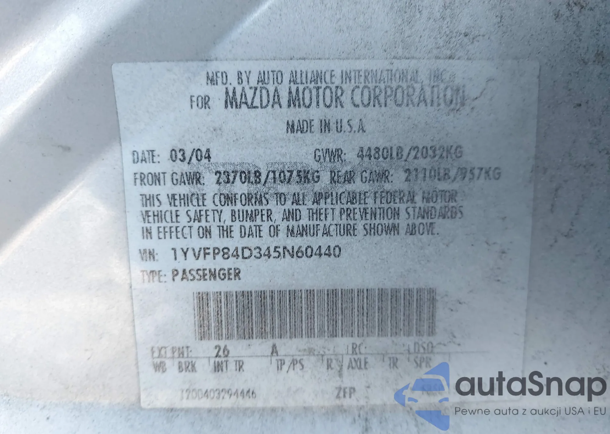 • VIN 1YVFP84D345N60440