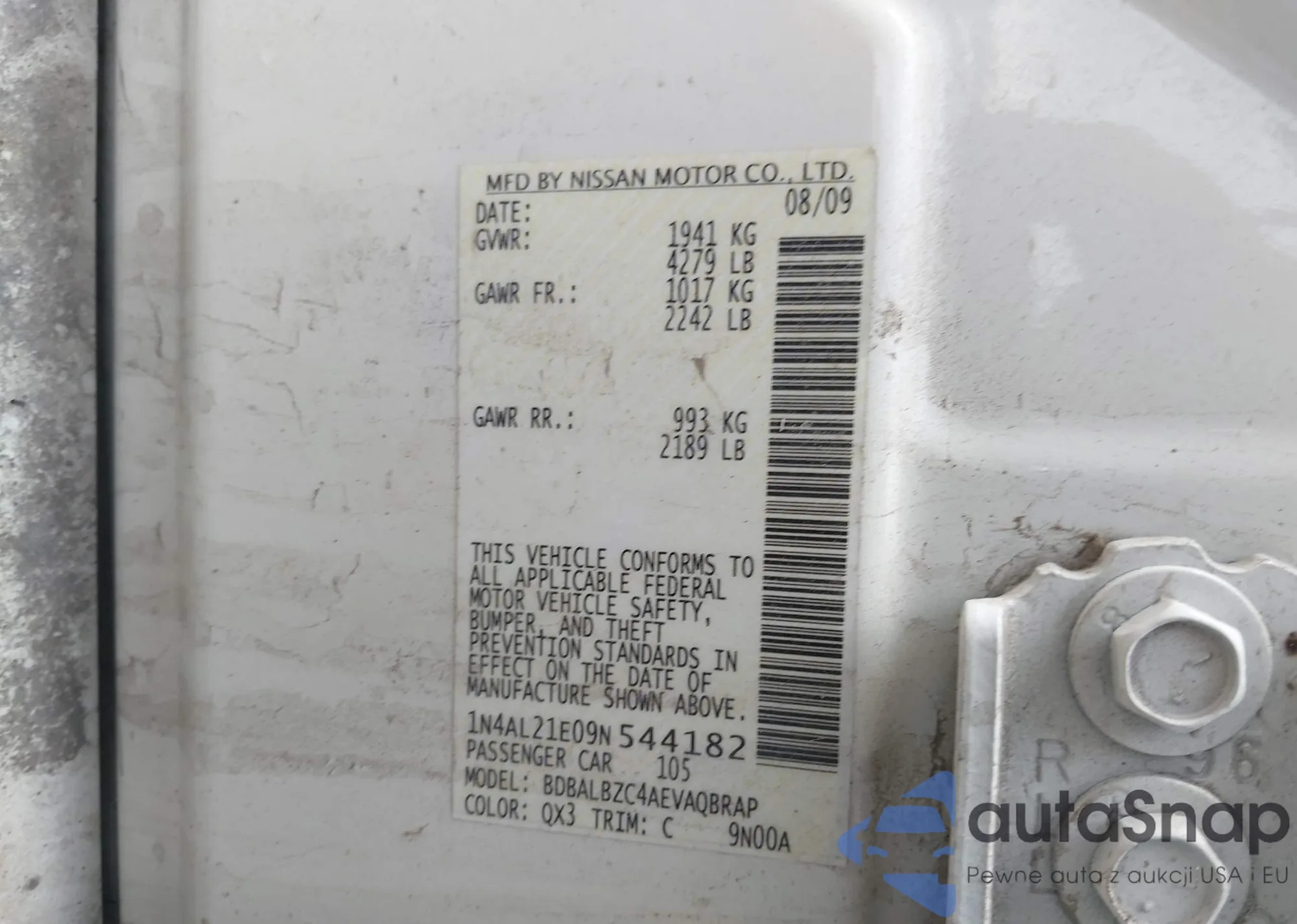 LOT: 44132867 VIN: 1N4AL21E09N544182
