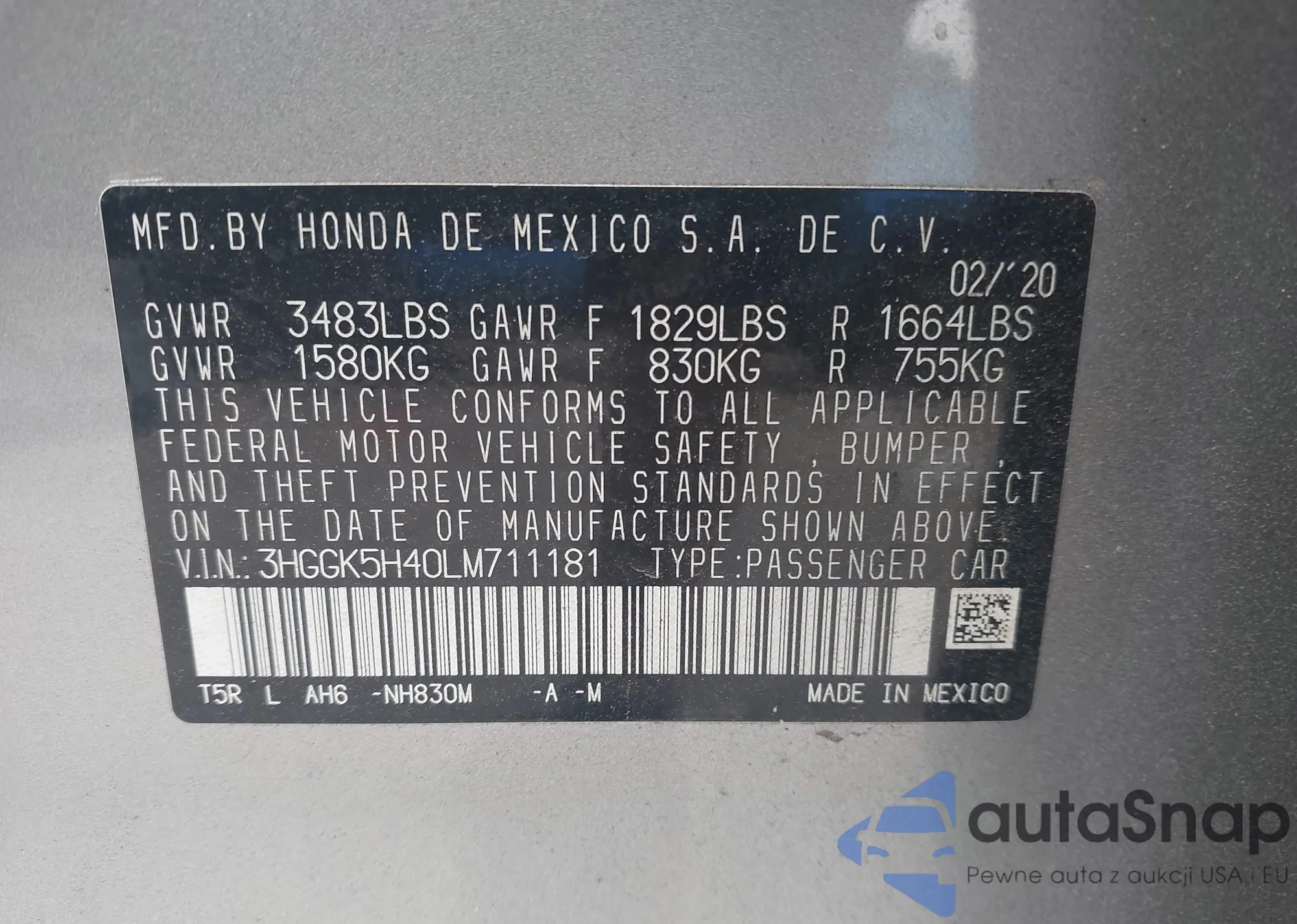 • VIN 3HGGK5H40LM711181