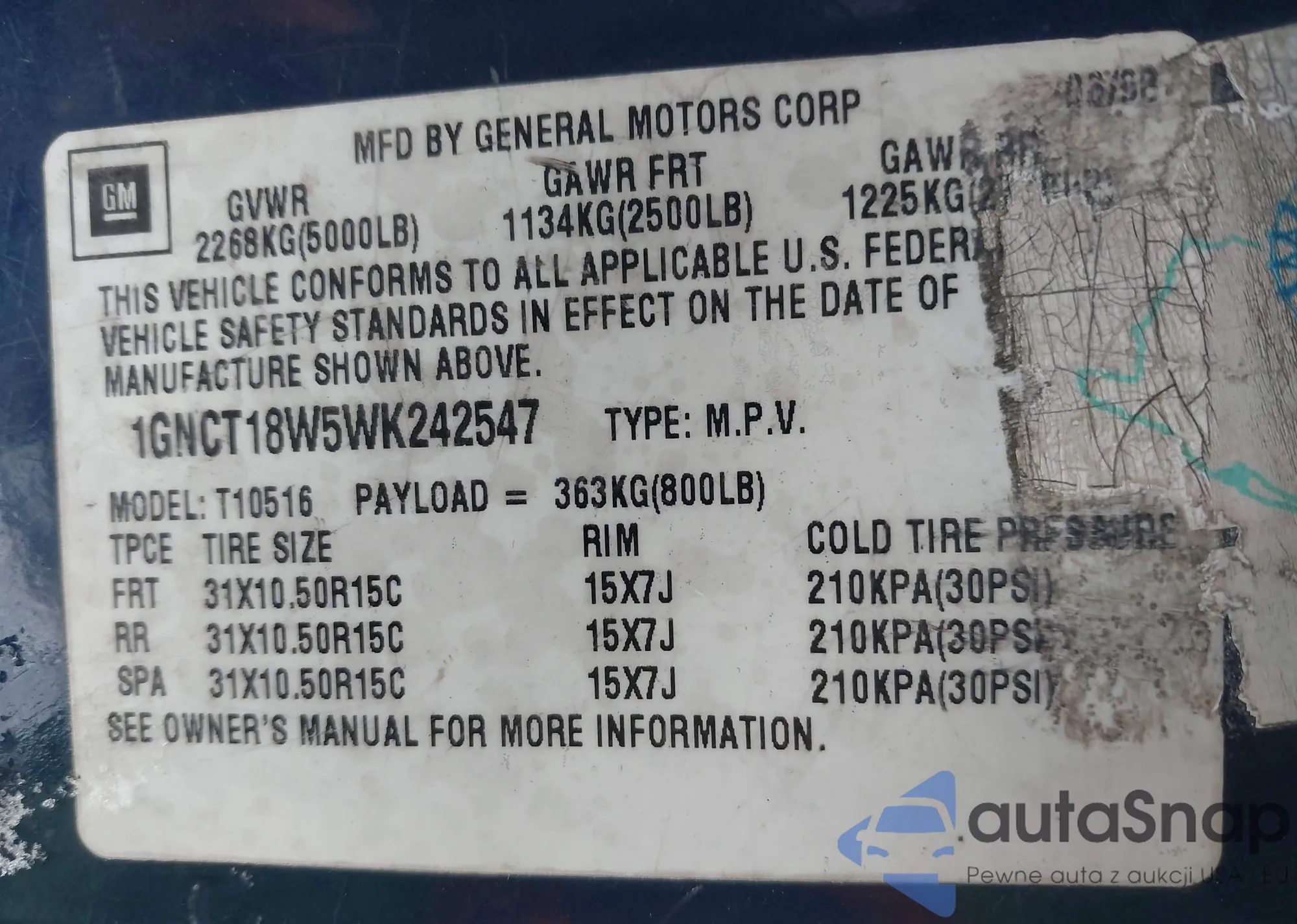 • VIN 1GNCT18W5WK242547