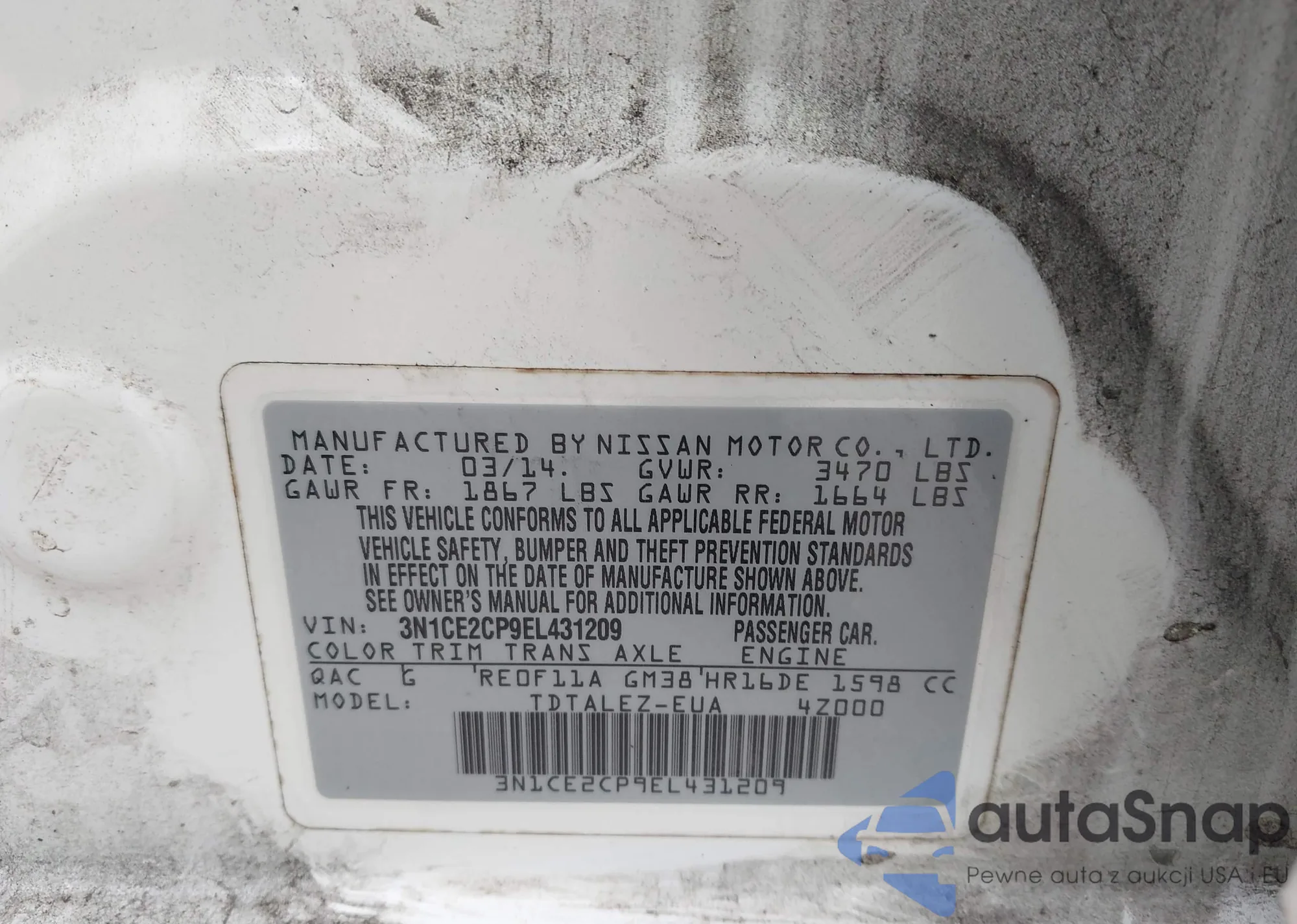 • VIN 3N1CE2CP9EL431209