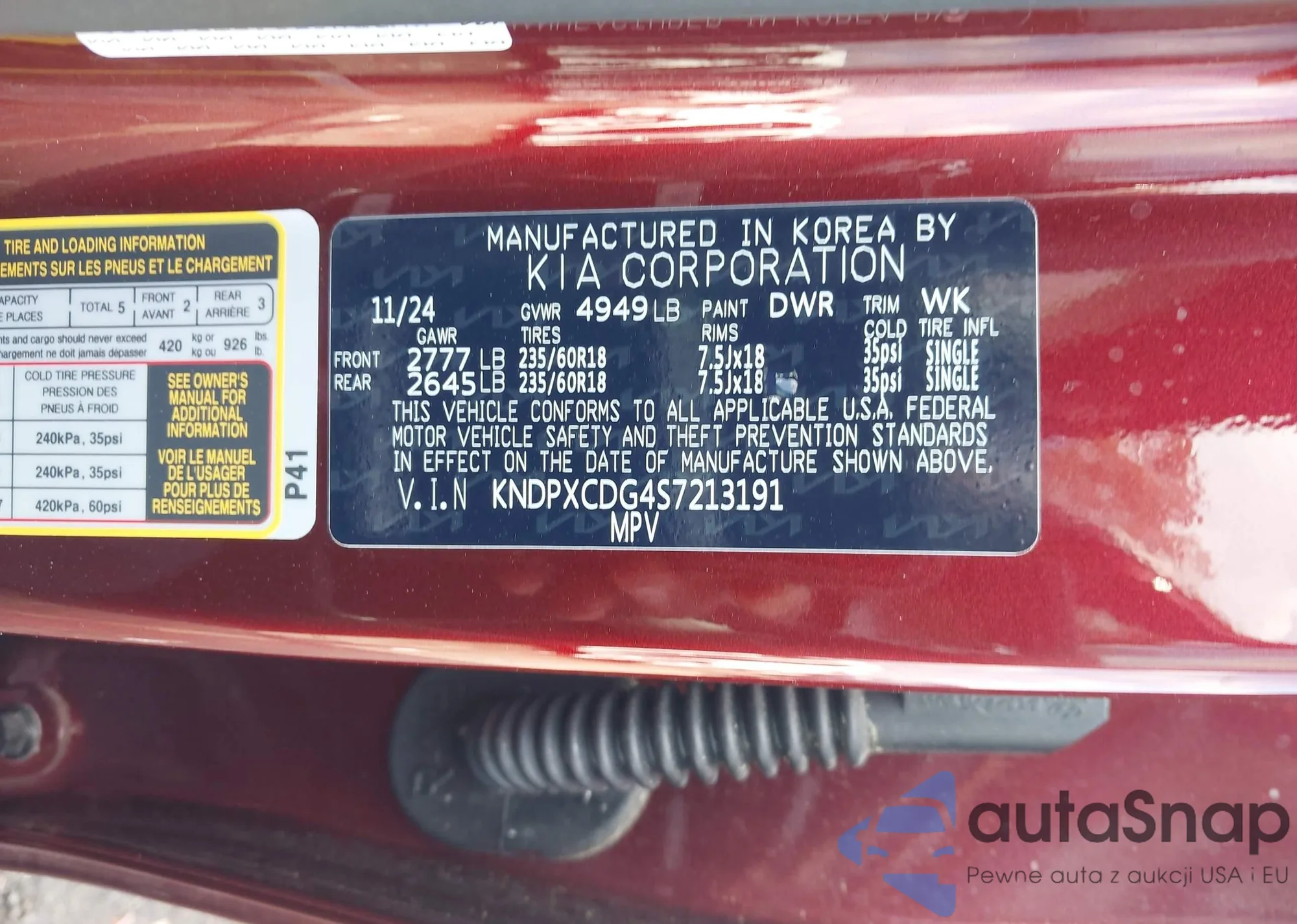 • VIN KNDPXCDG4S7213191