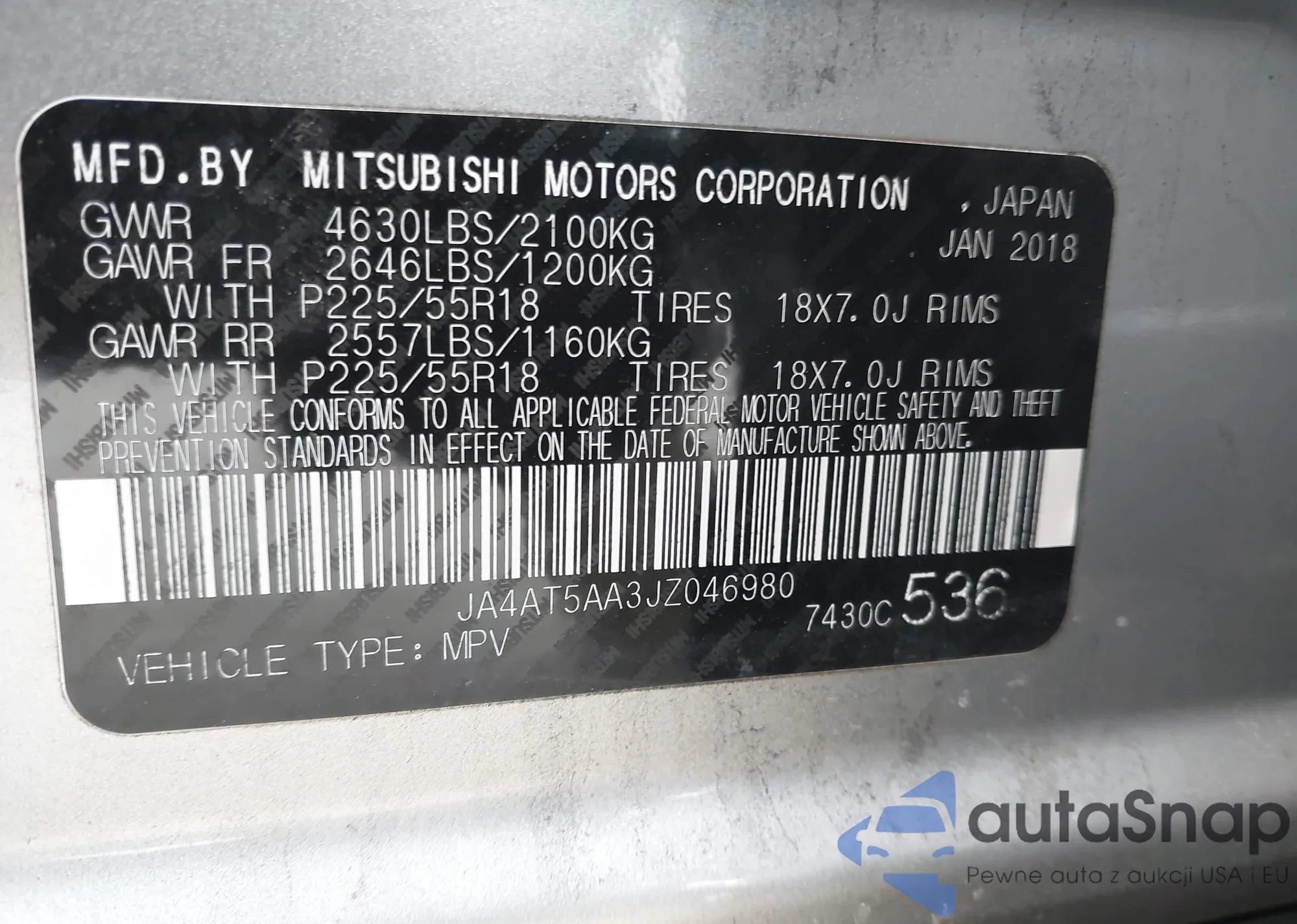 LOT: 43918741 VIN: JA4AT5AA3JZ046980