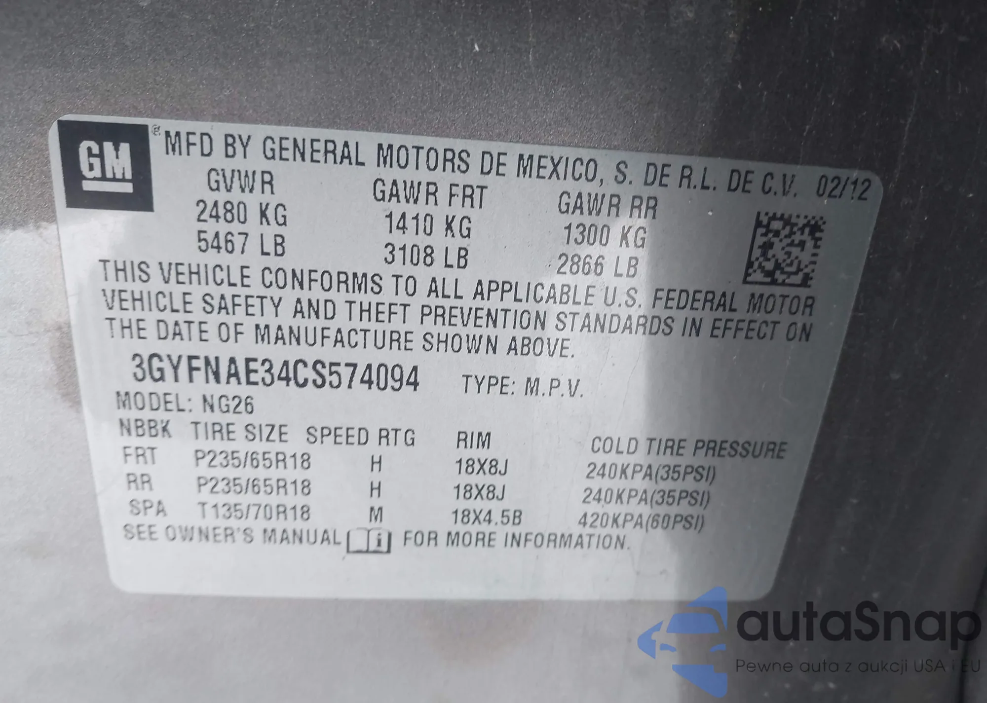 • VIN 3GNAXKEVXML306283