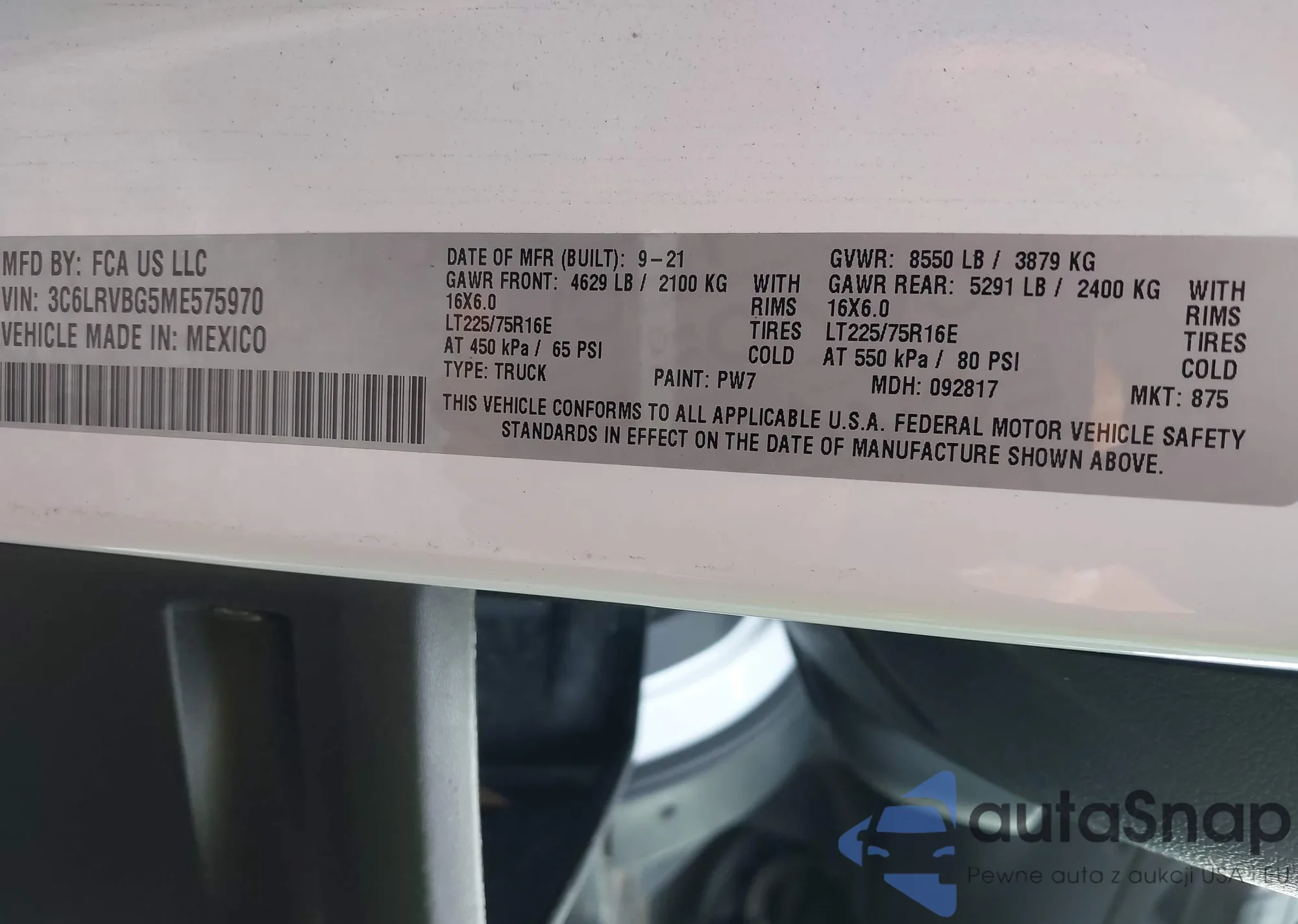 • VIN 3C6LRVBG5ME575970