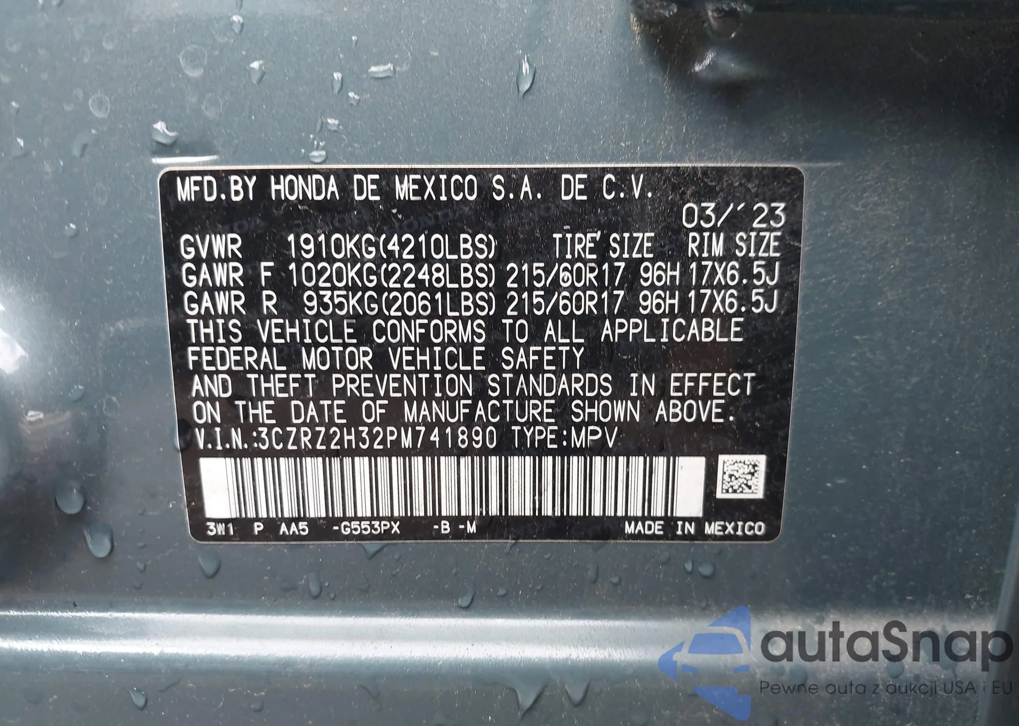 • VIN 3CZRZ2H32PM741890