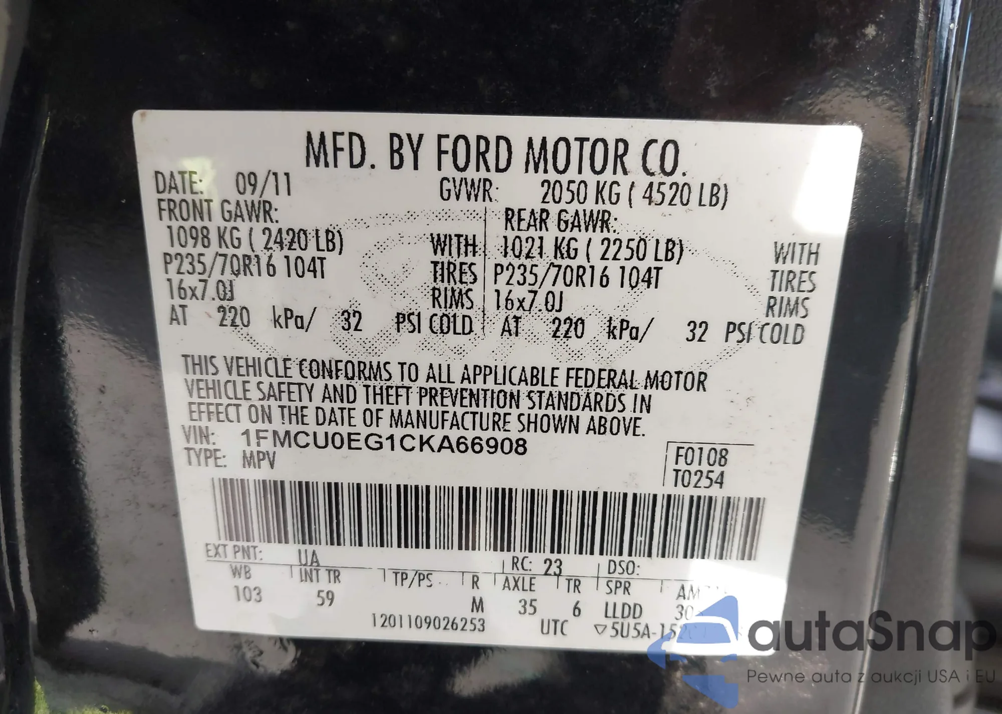 • VIN 1FMCU0EG1CKA66908