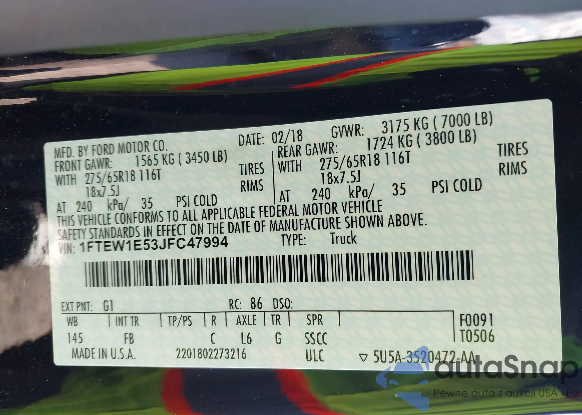 LOT: 44051520 VIN: 1FTEW1E53JFC47994