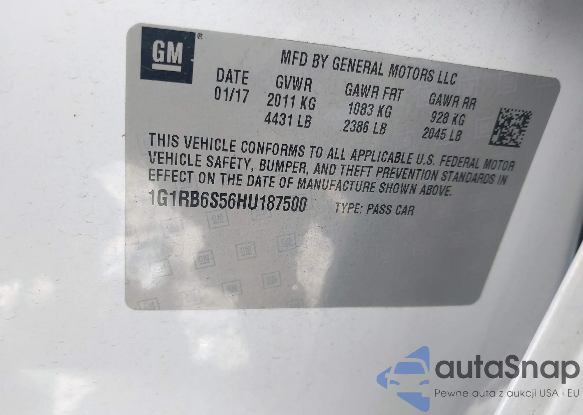 • VIN 1G1ZEB5E1BF266967