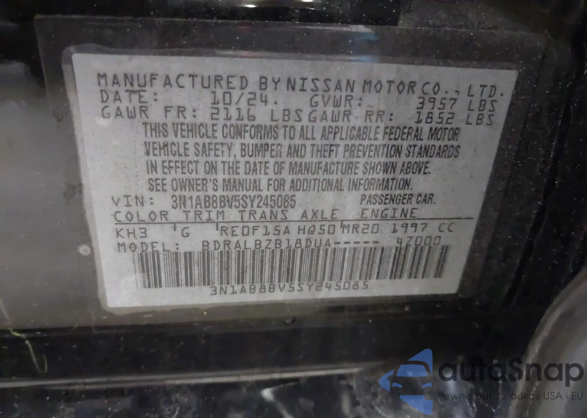 • VIN 3N1AB8BV5SY245085
