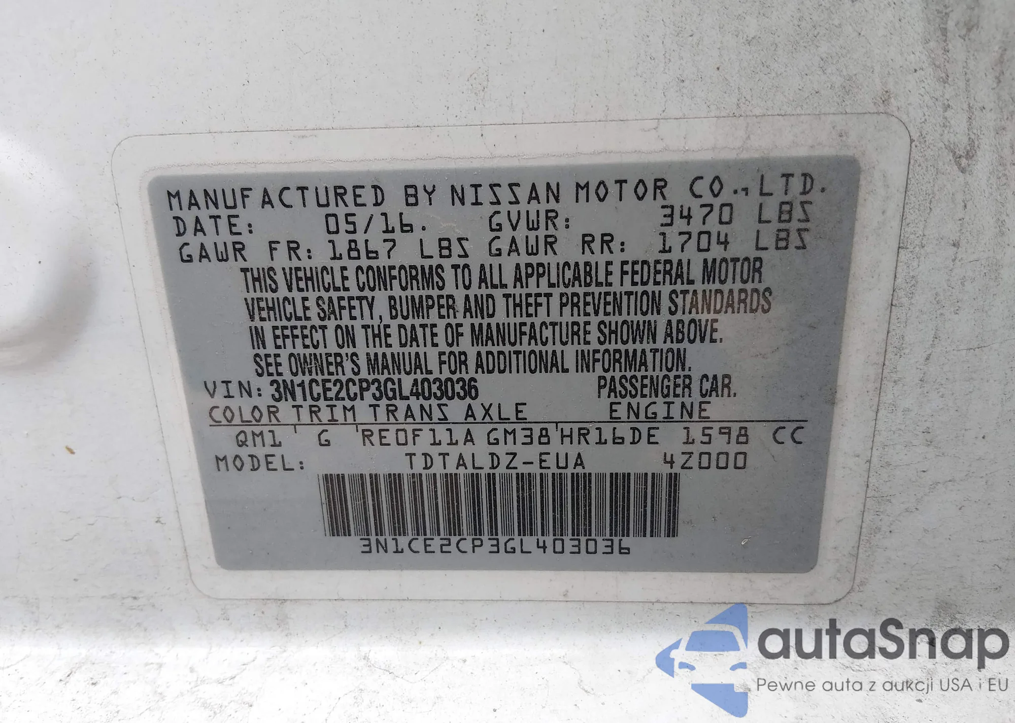 • VIN 3N1CE2CP3GL403036