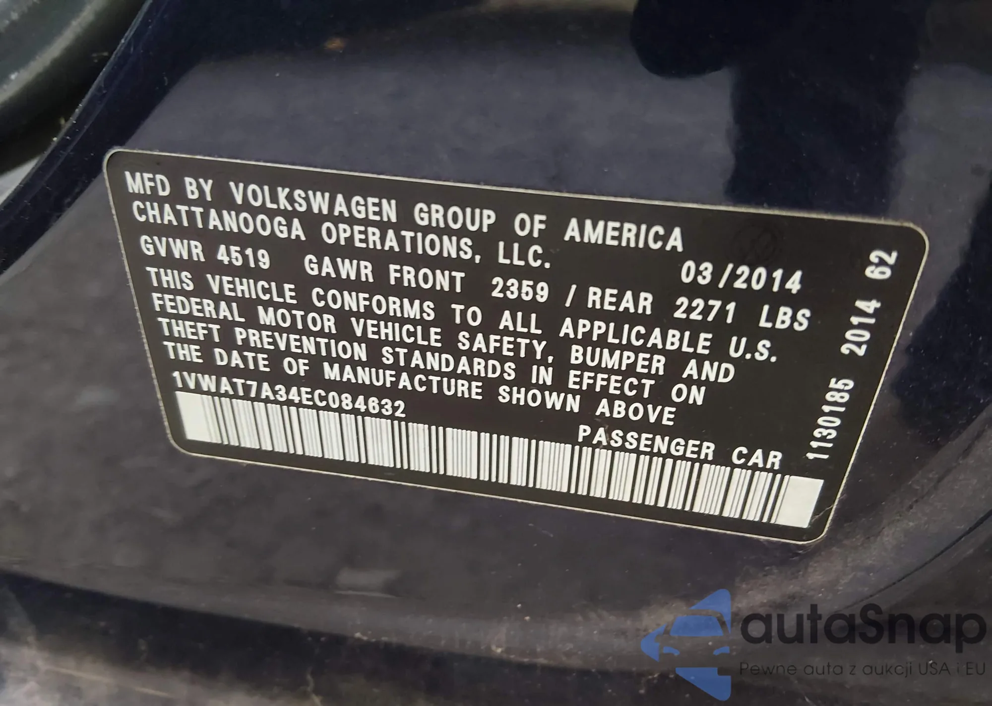 • VIN 1VWAT7A34EC084632