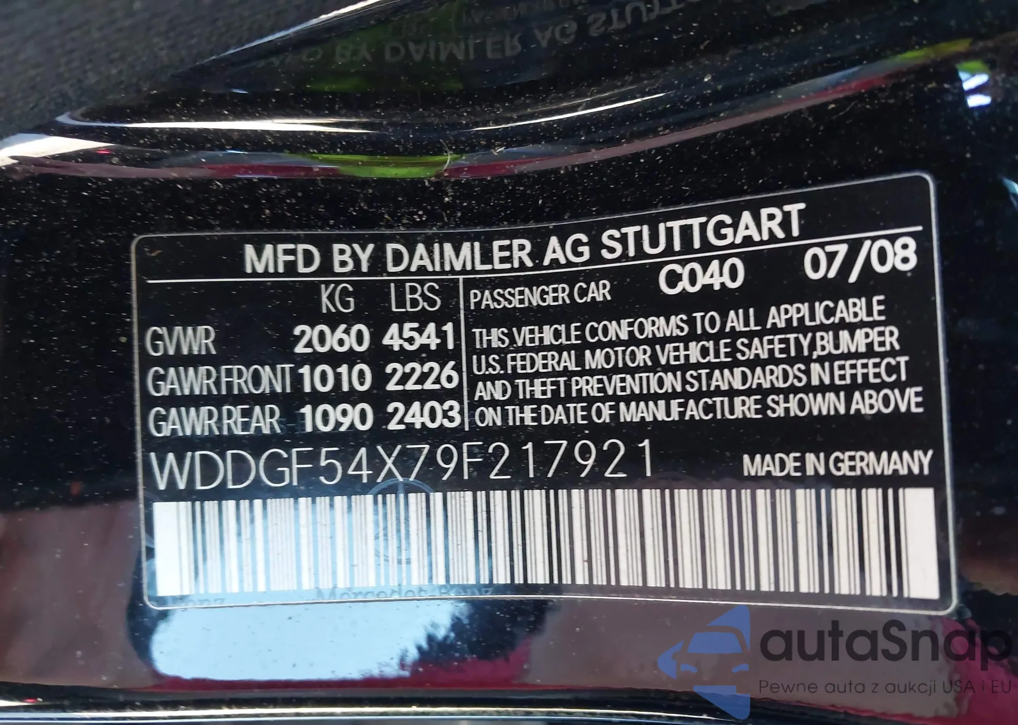LOT: 44204433 VIN: WDDGF54X79F217921