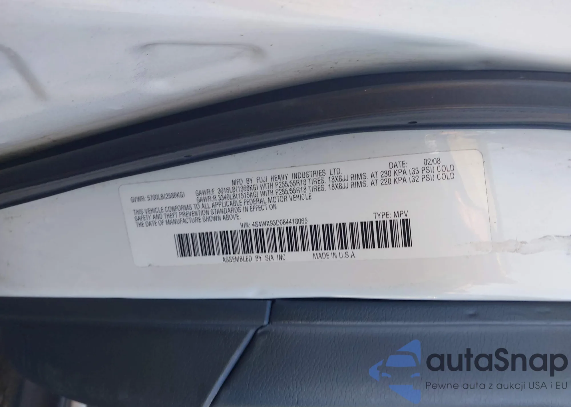 LOT: 44077065 VIN: 4S4WX93D084418065