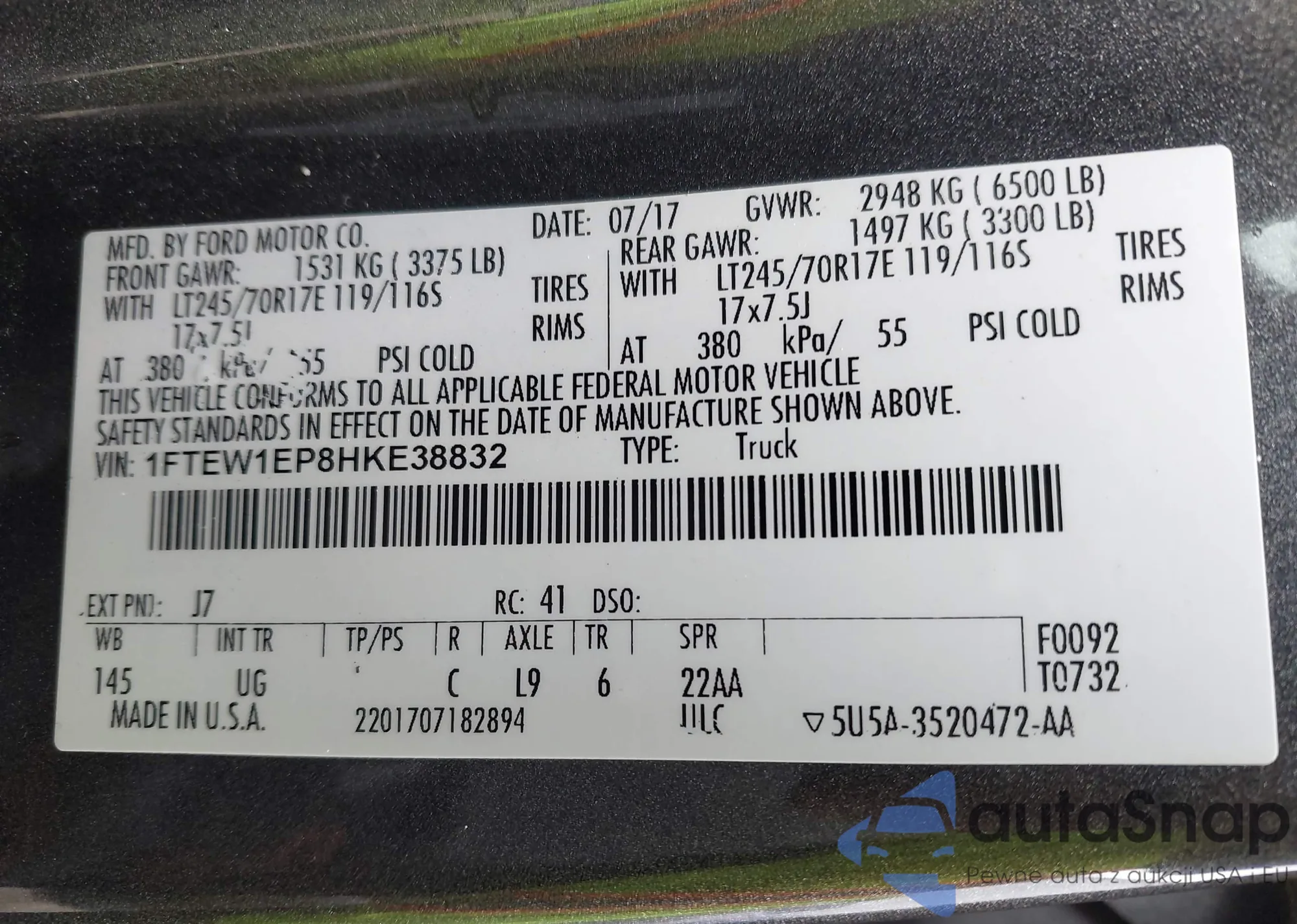 LOT: 44168935 VIN: 1FTEW1EP8HKE38832