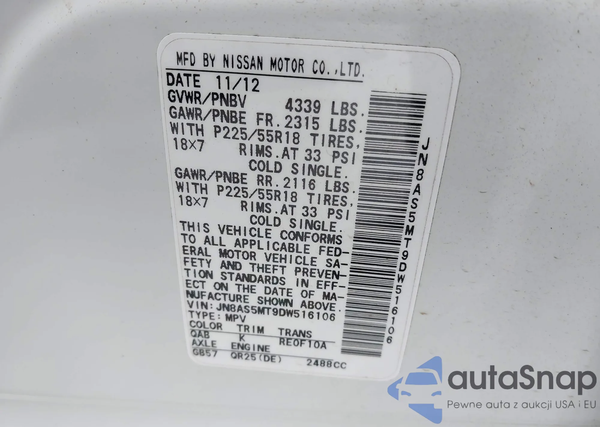 LOT: 43676107 VIN: 1N6AD0EVXDN733210
