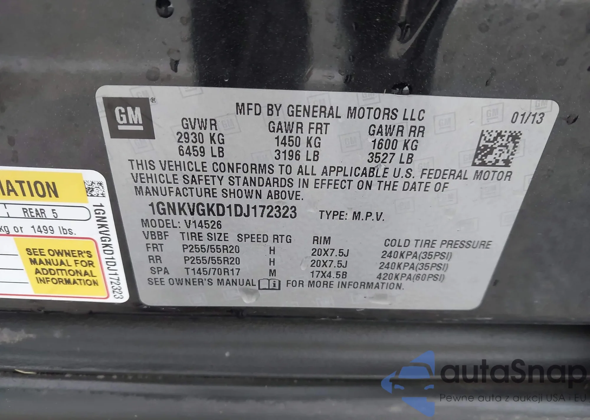 • VIN 1GNKVGKD1DJ172323