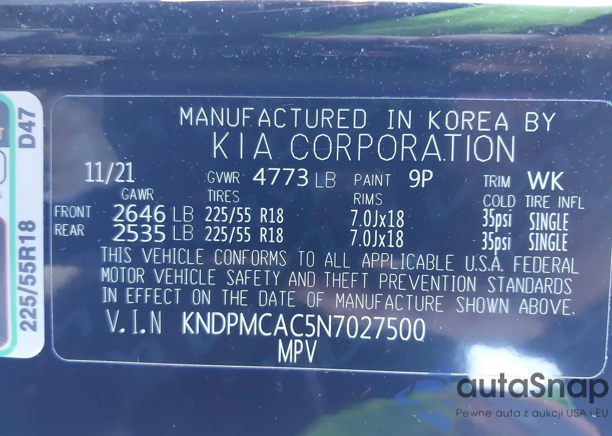 • VIN 5XXGN4A79EG327778