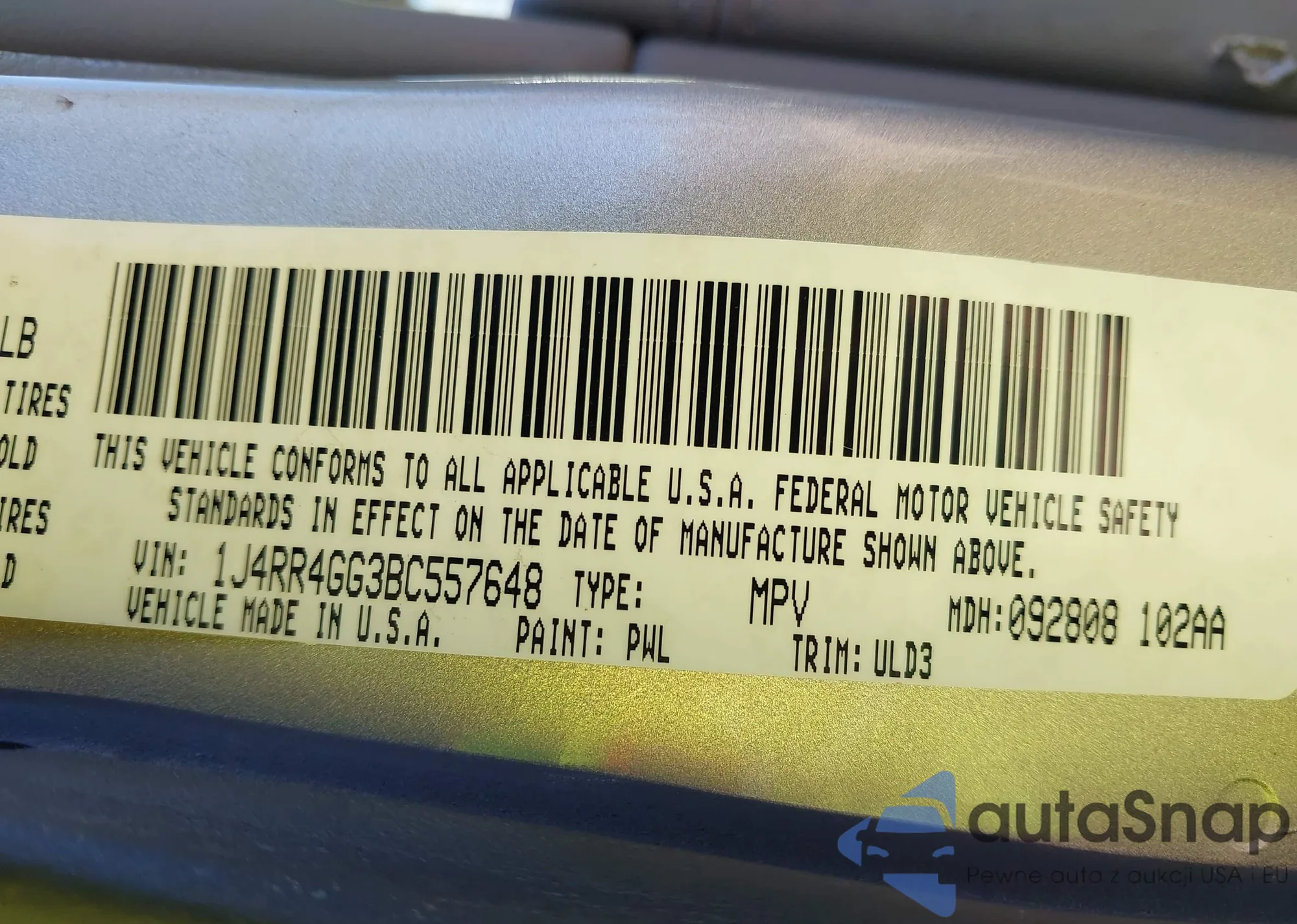 • VIN 1J4RR4GG3BC557648
