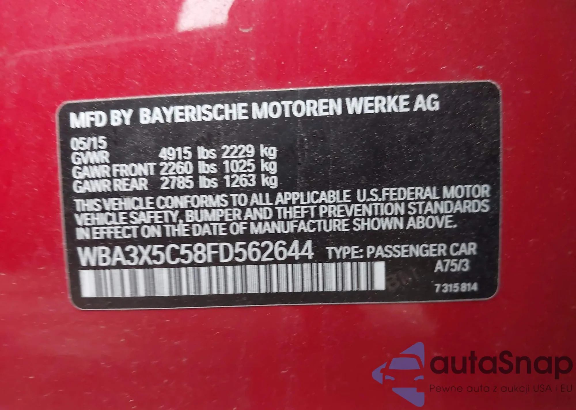 • VIN WBA3X5C58FD562644