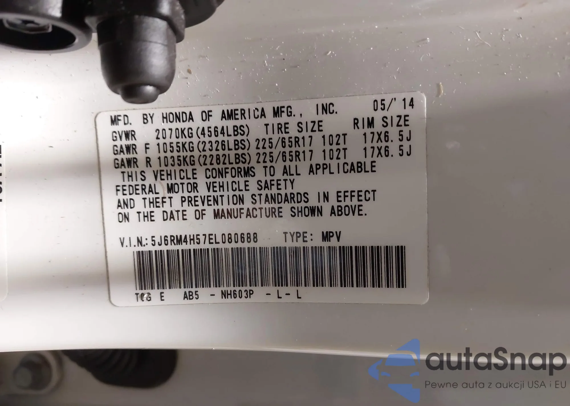 • VIN 5J6RM4H57EL080688