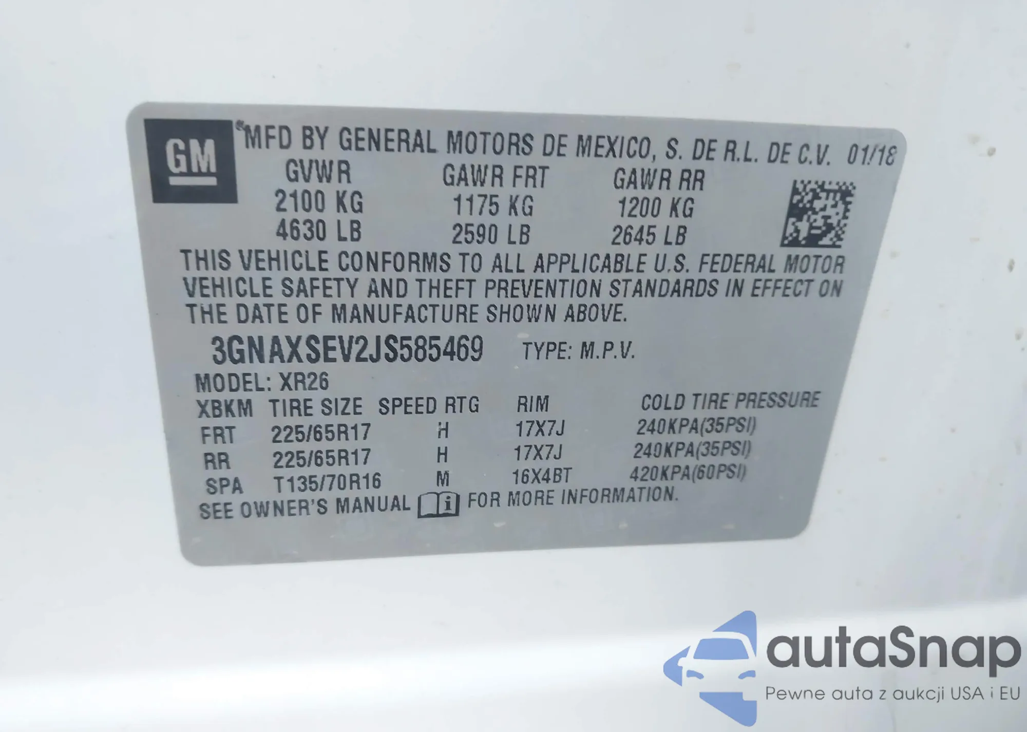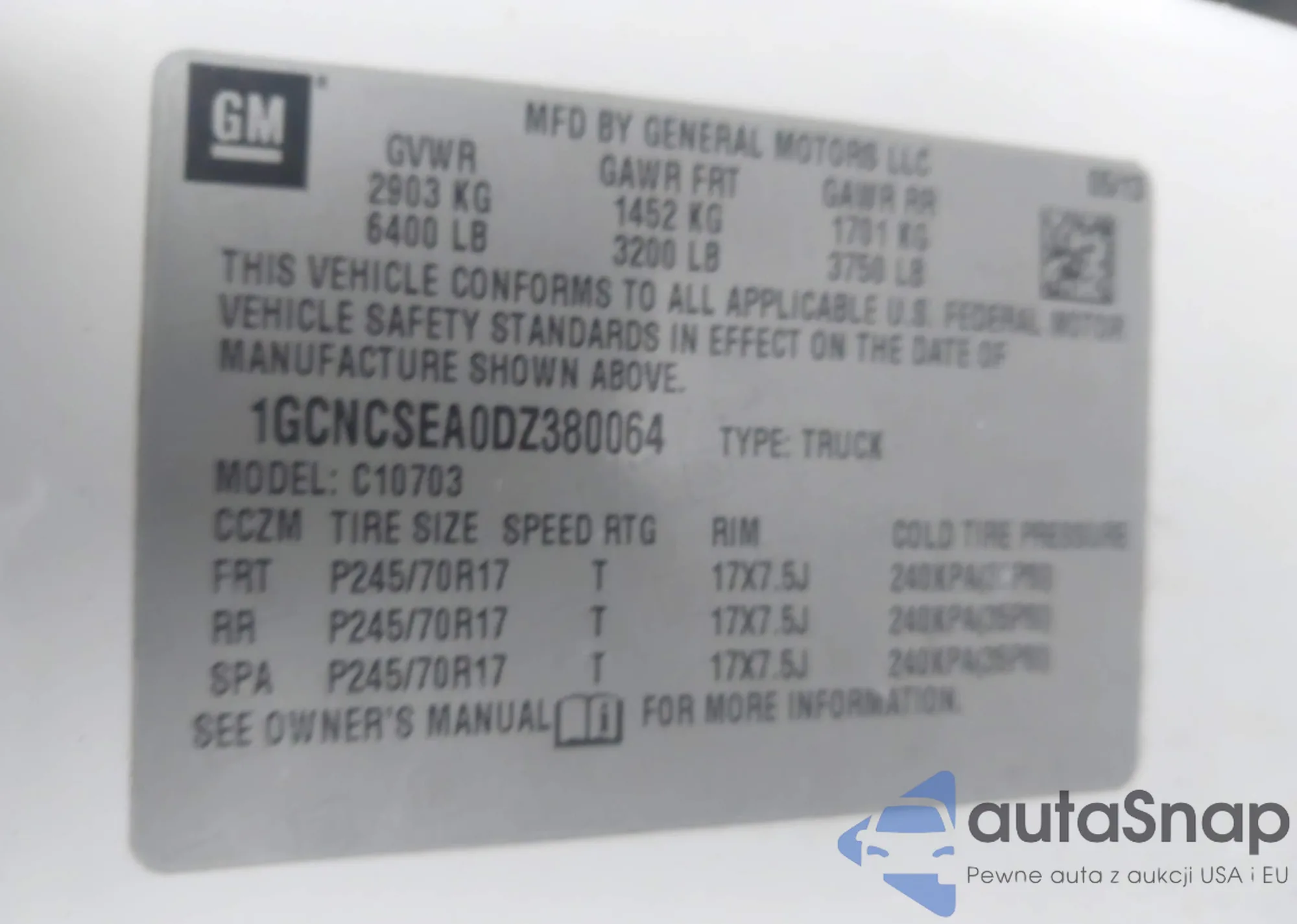 LOT: 43832390 VIN: 1GCNCSEA0DZ380064