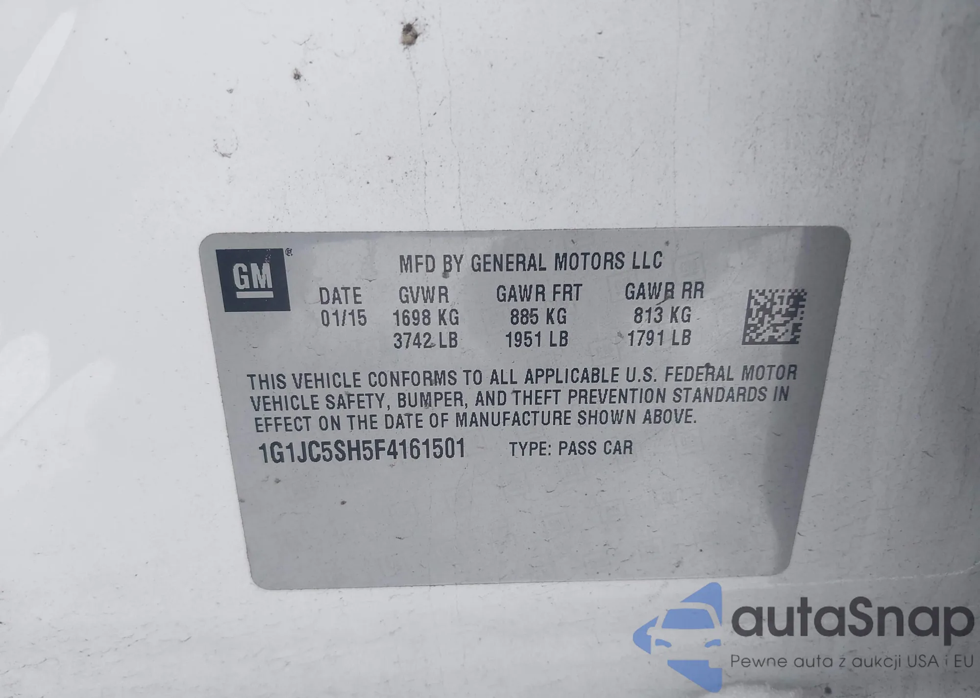 LOT: 43838009 VIN: 1G1JC5SH5F4161501
