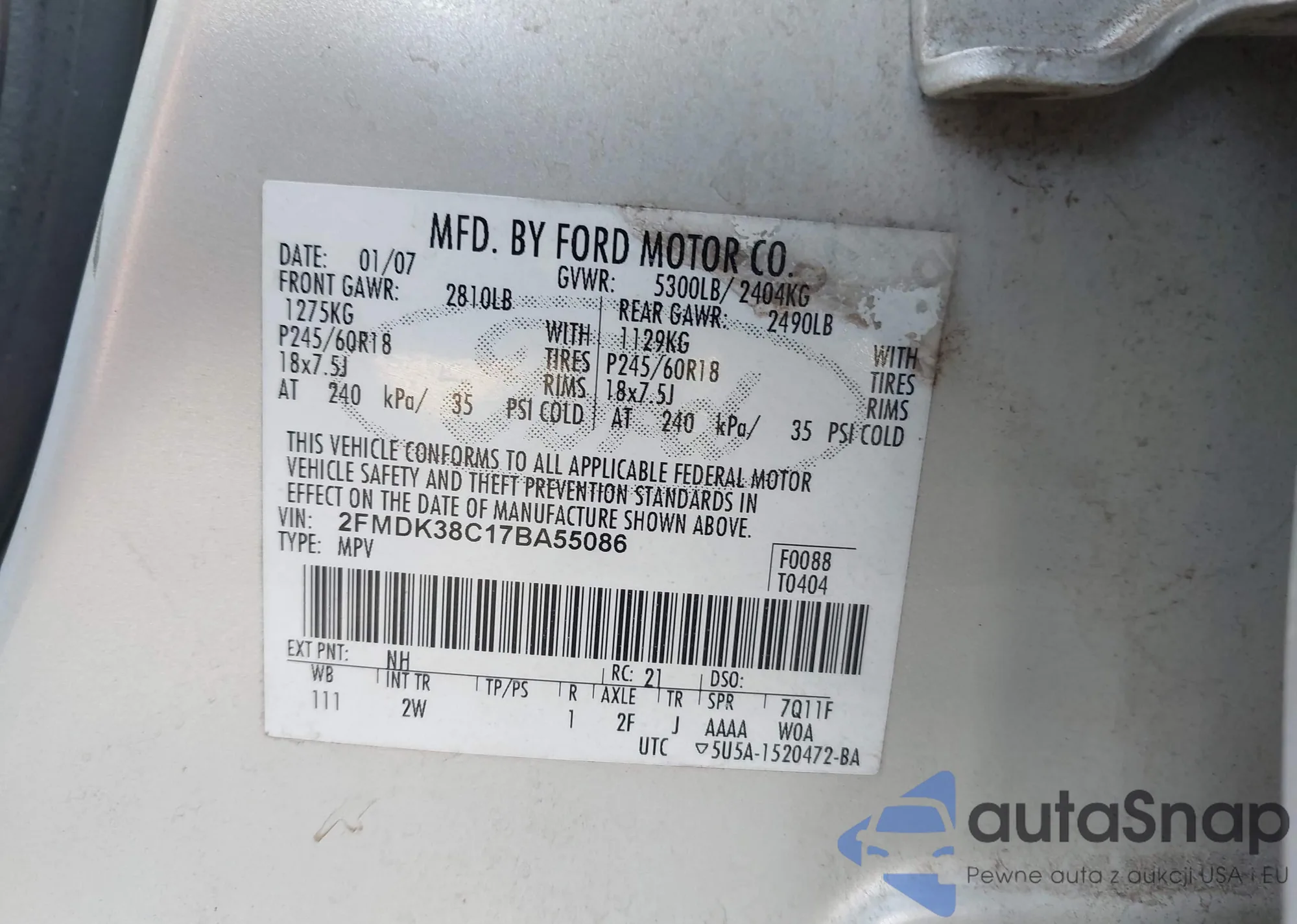 • VIN 1FTFW1EF2DFB13947