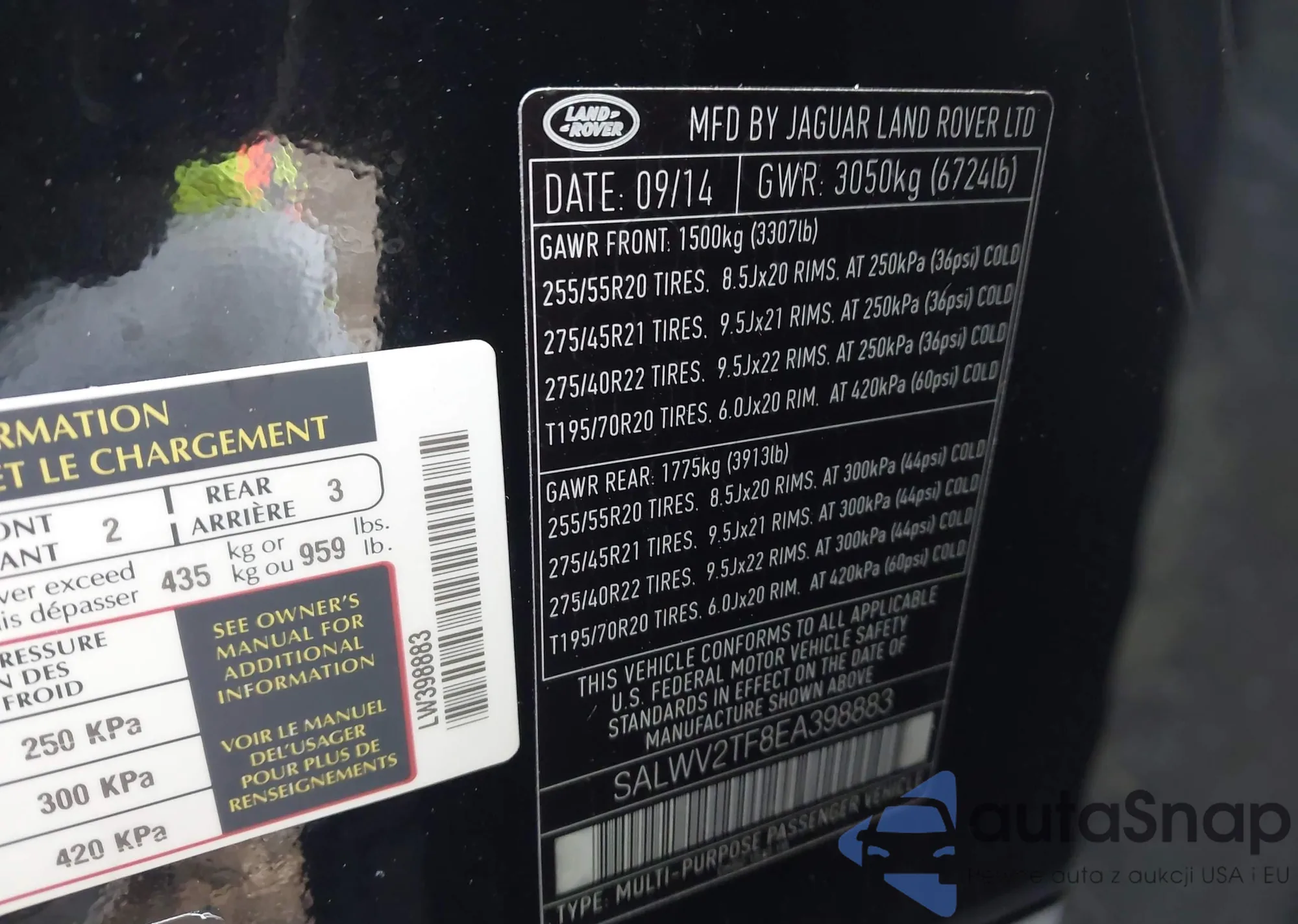 LOT: 43761996 VIN: SALWV2TF8EA398883