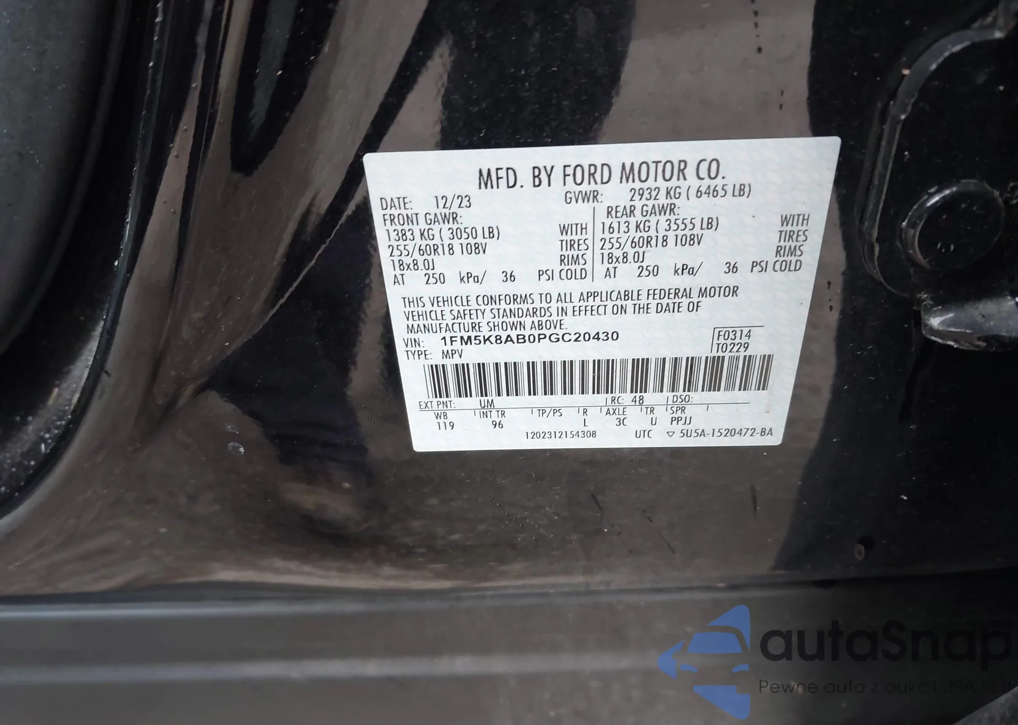 LOT: 43339203 VIN: 1FM5K8AB0PGC20430