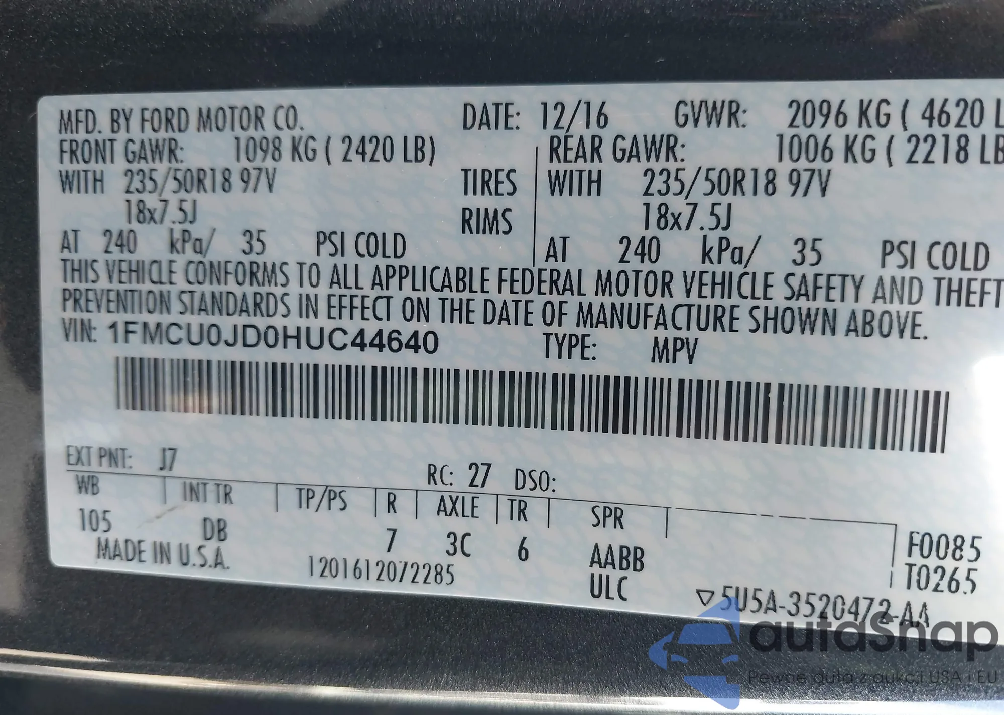 • VIN 1FM5K8AB0PGC20430