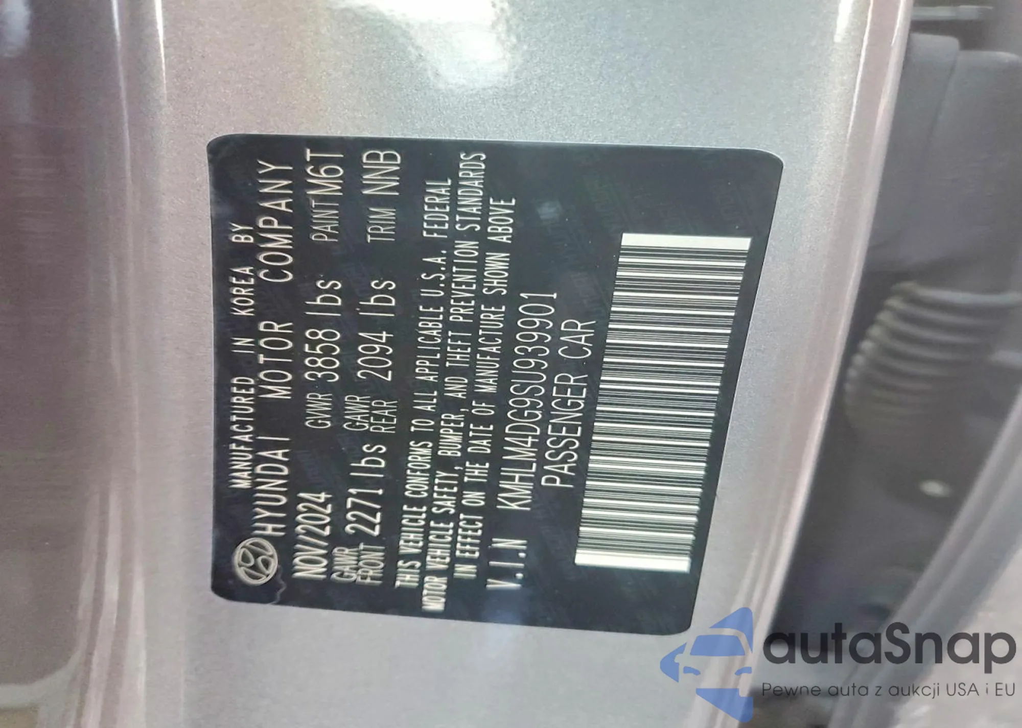 LOT: 98213315 VIN: KMHLM4DG9SU939901