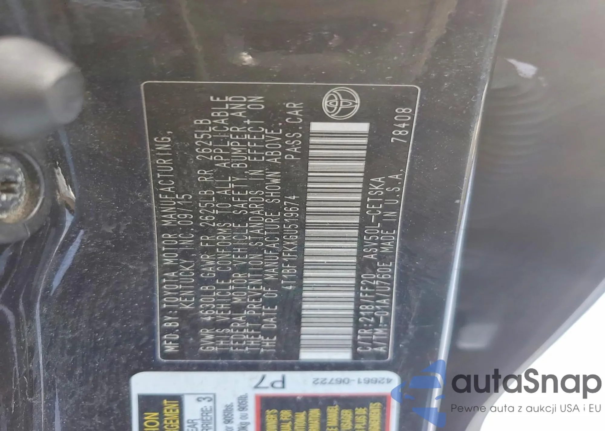 • VIN 4T1BF1FKXGU519674
