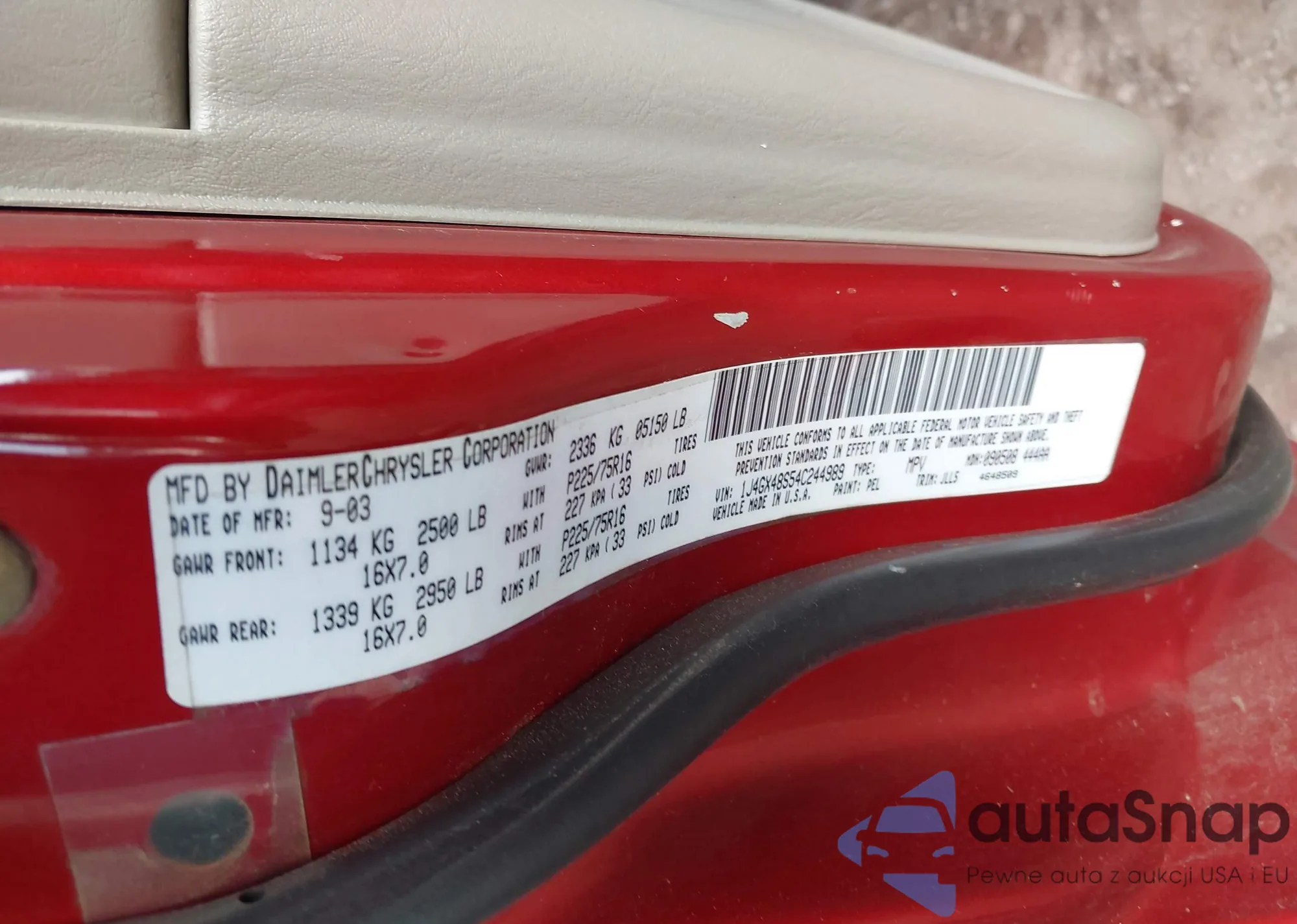 LOT: 43989410 VIN: 1J4GX48S54C244989