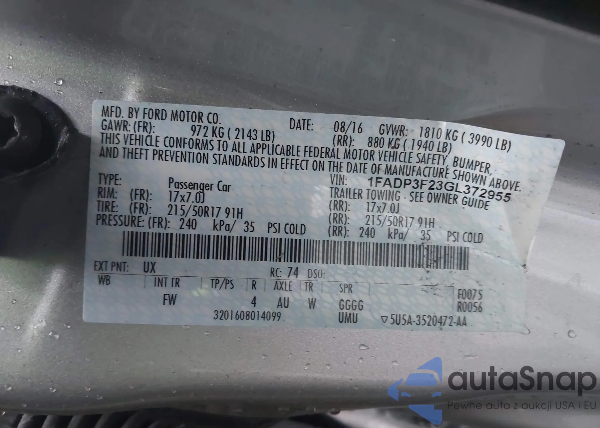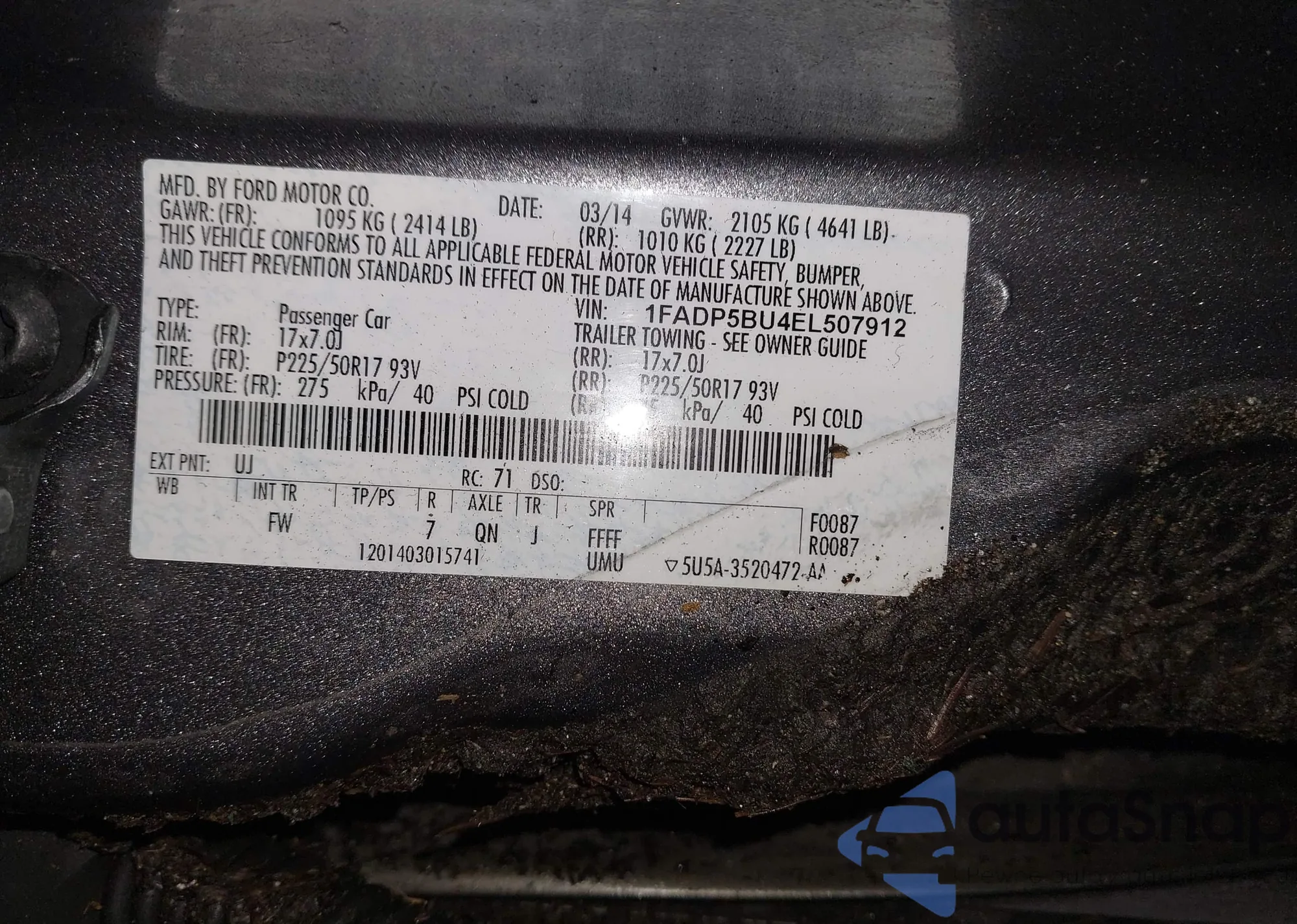 • VIN 1FADP5BU4EL507912