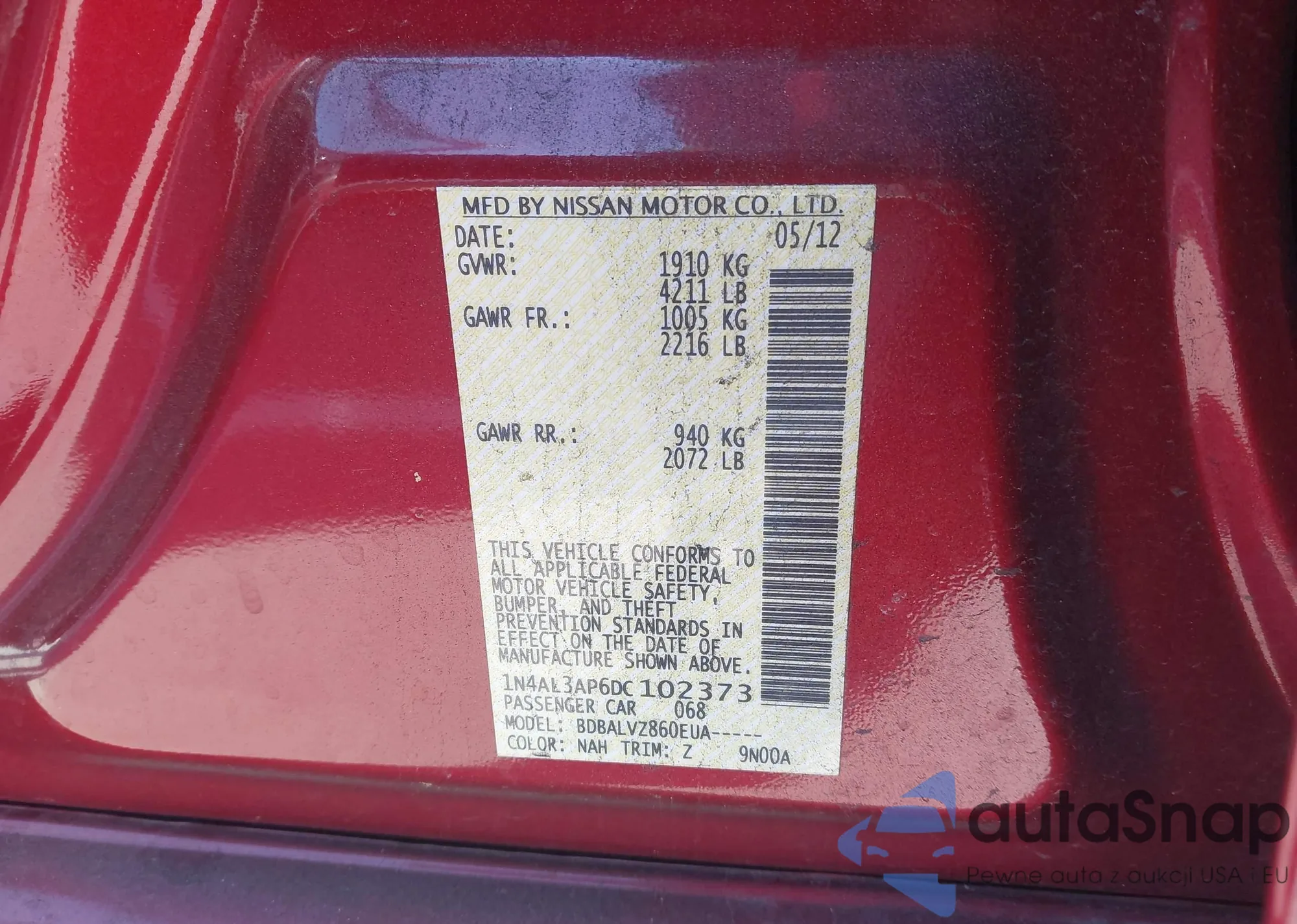 • VIN 1N4AL3AP6DC102373