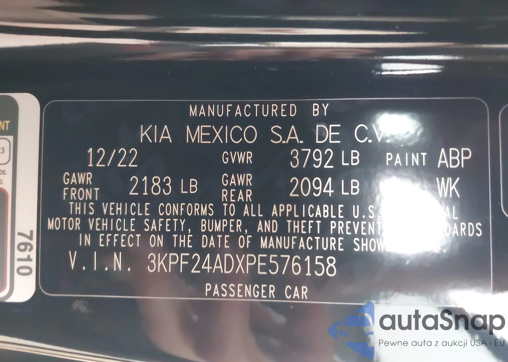 • VIN 3KPF24ADXPE576158