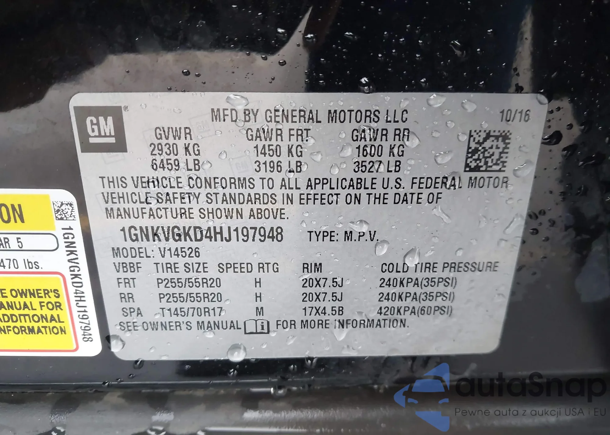 LOT: 44199255 VIN: 1GNKVGKD4HJ197948