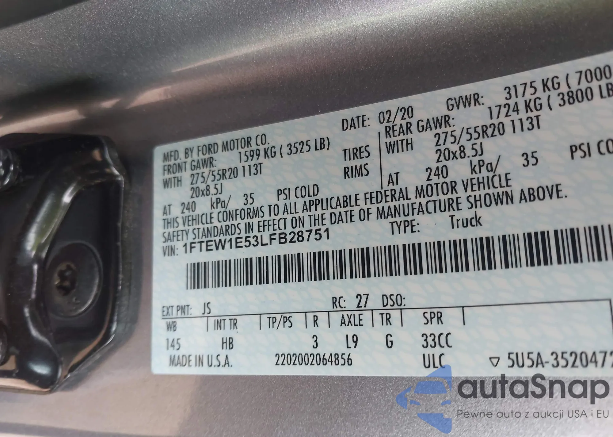 • VIN 1FTEW1E53LFB28751
