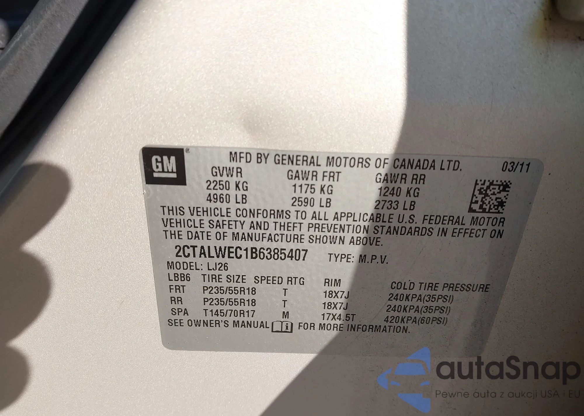 • VIN 2CTALWEC1B6385407