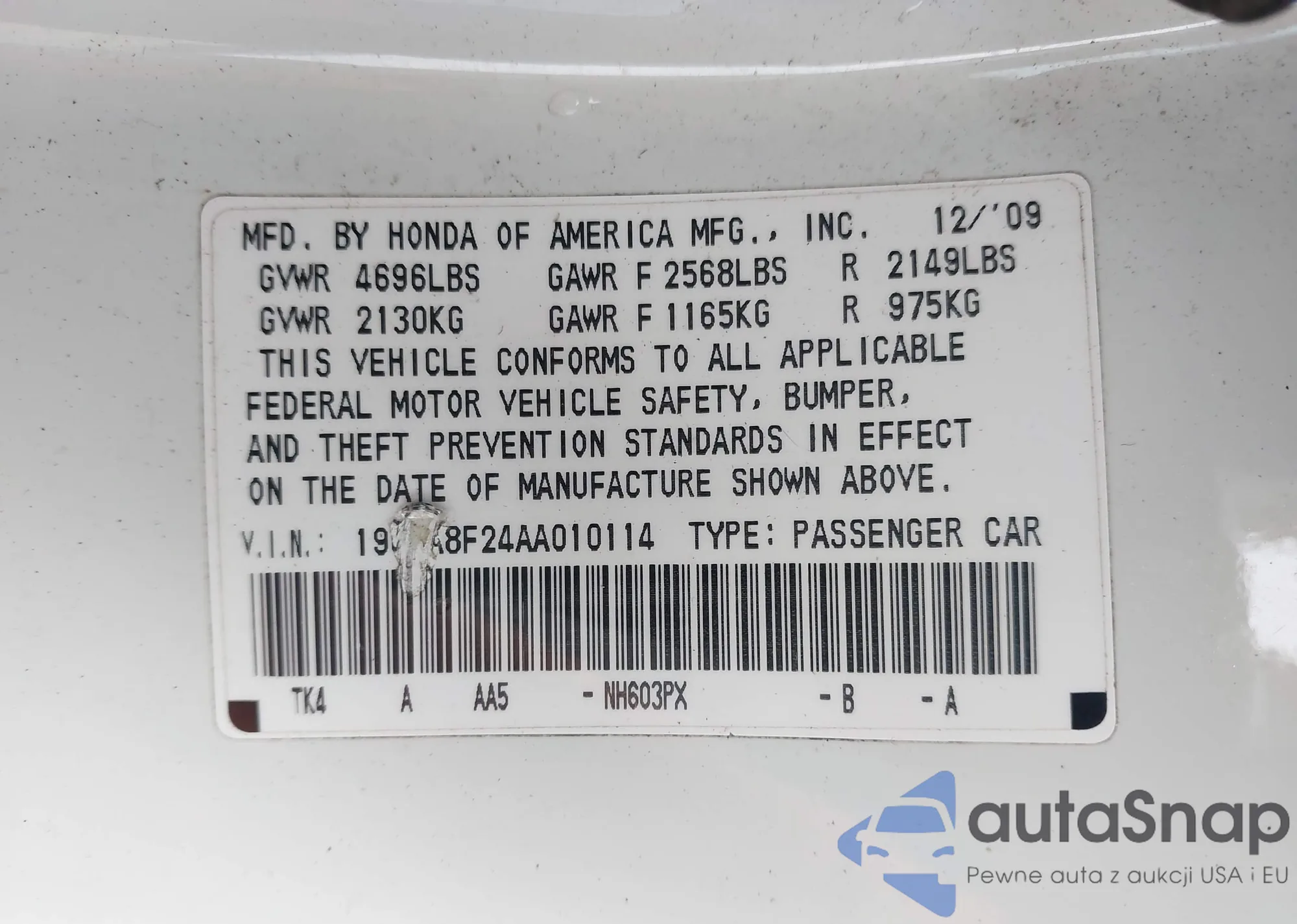 • VIN 19UUA8F24AA010114