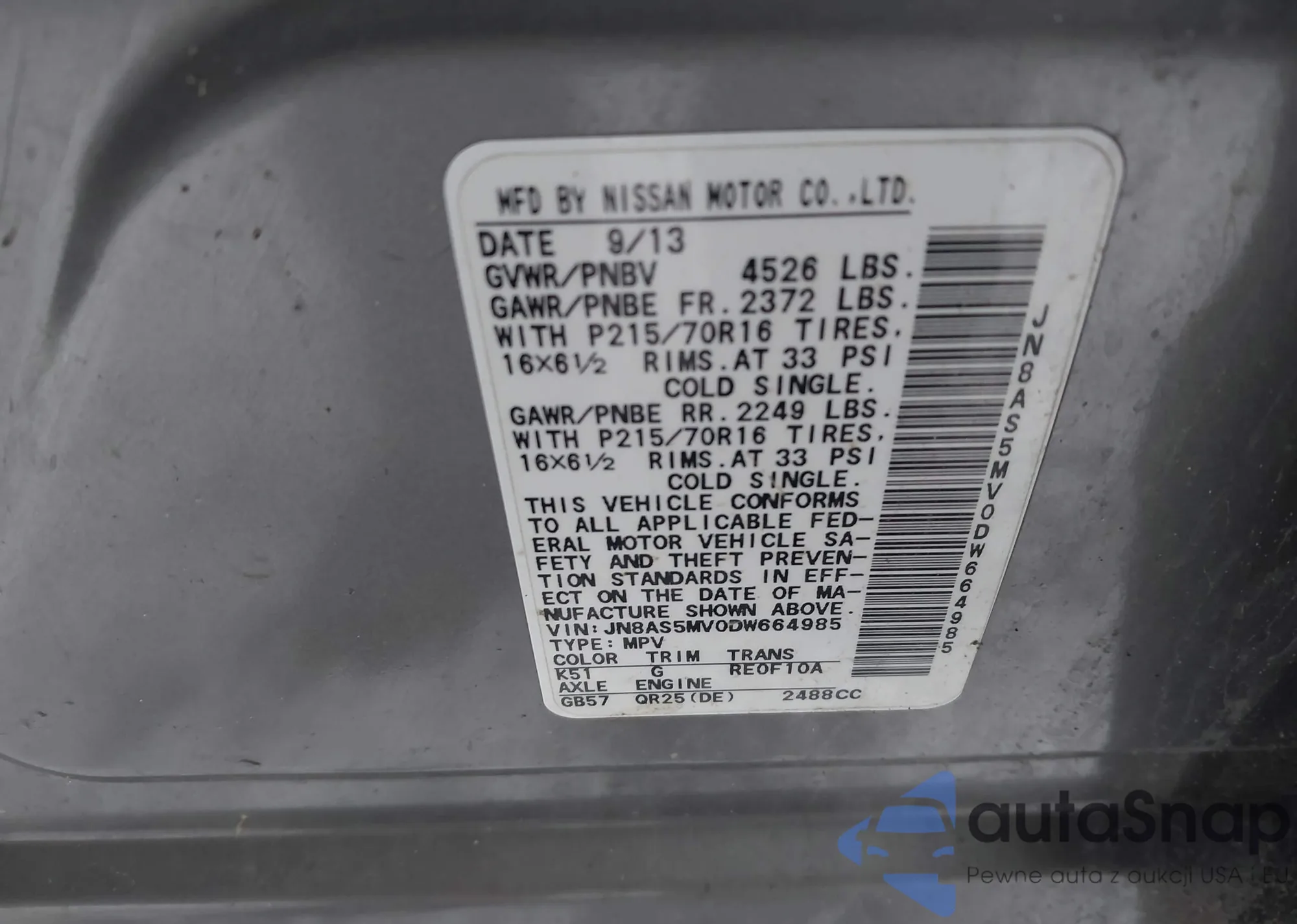 LOT: 44038563 VIN: 1FAHP2E8XDG216353