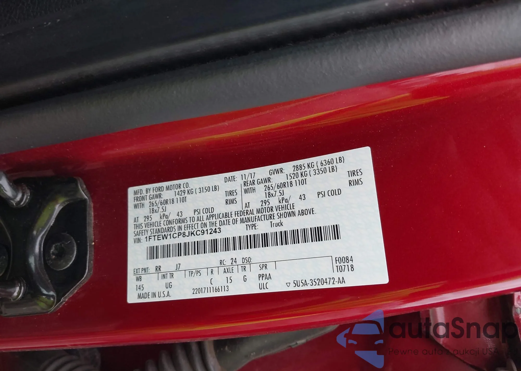 • VIN 1FTEW1CP8JKC91243
