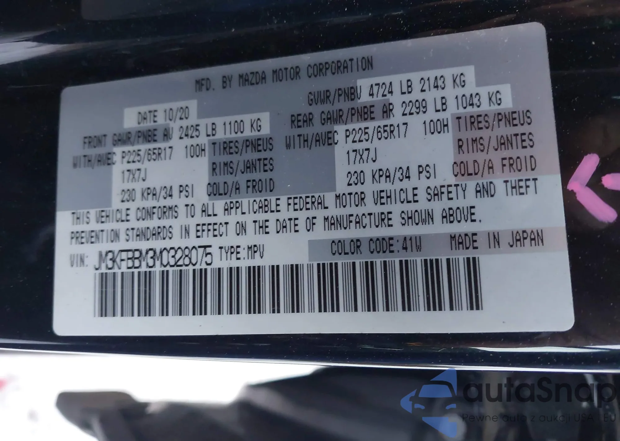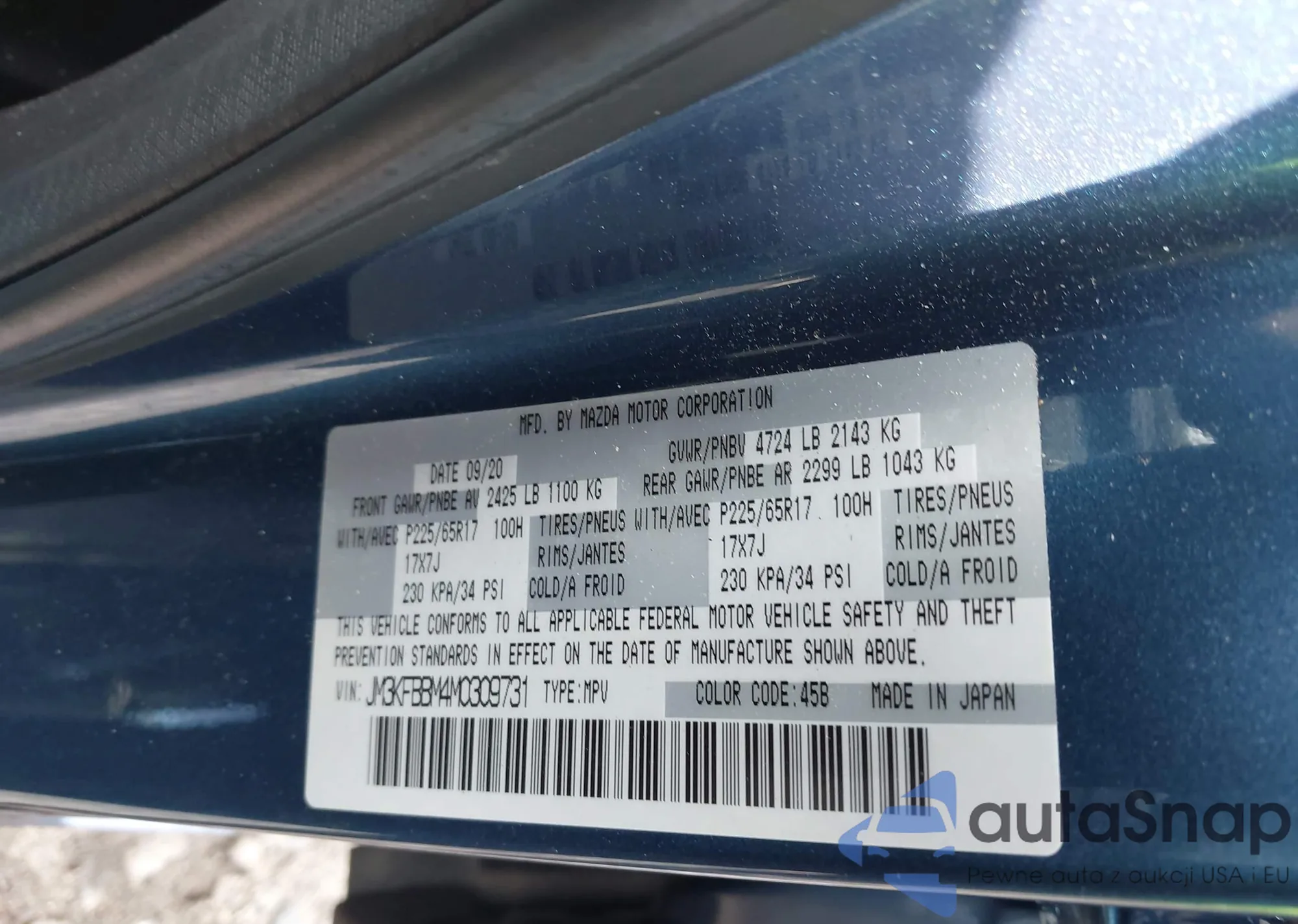 LOT: 43698896 VIN: JM3KFBBM4M0309731