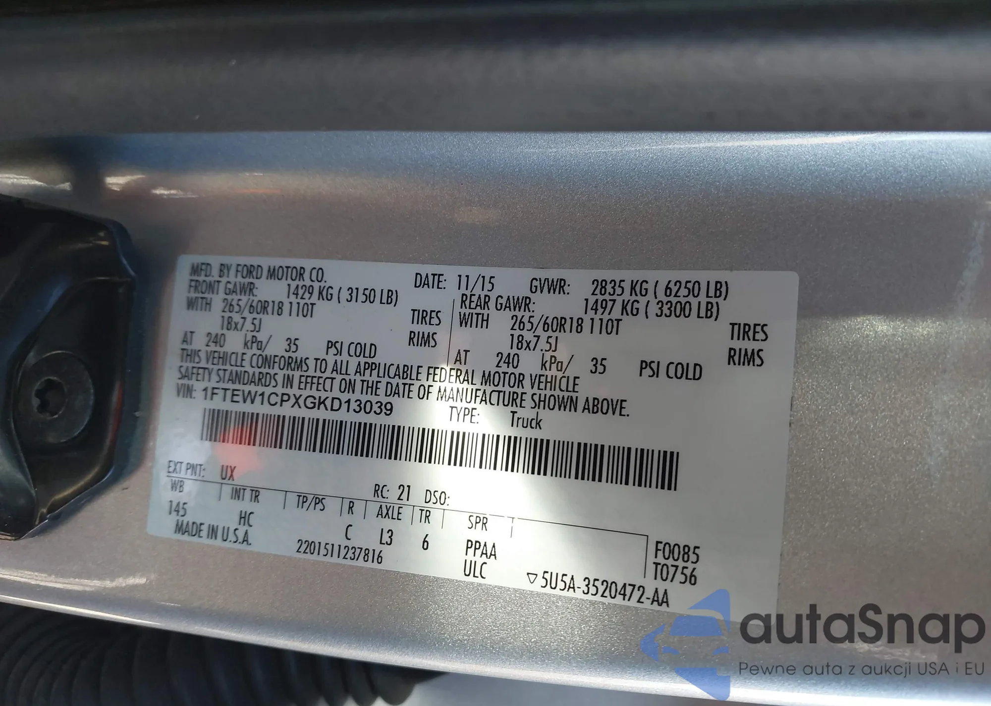 • VIN 1FTEW1CPXGKD13039
