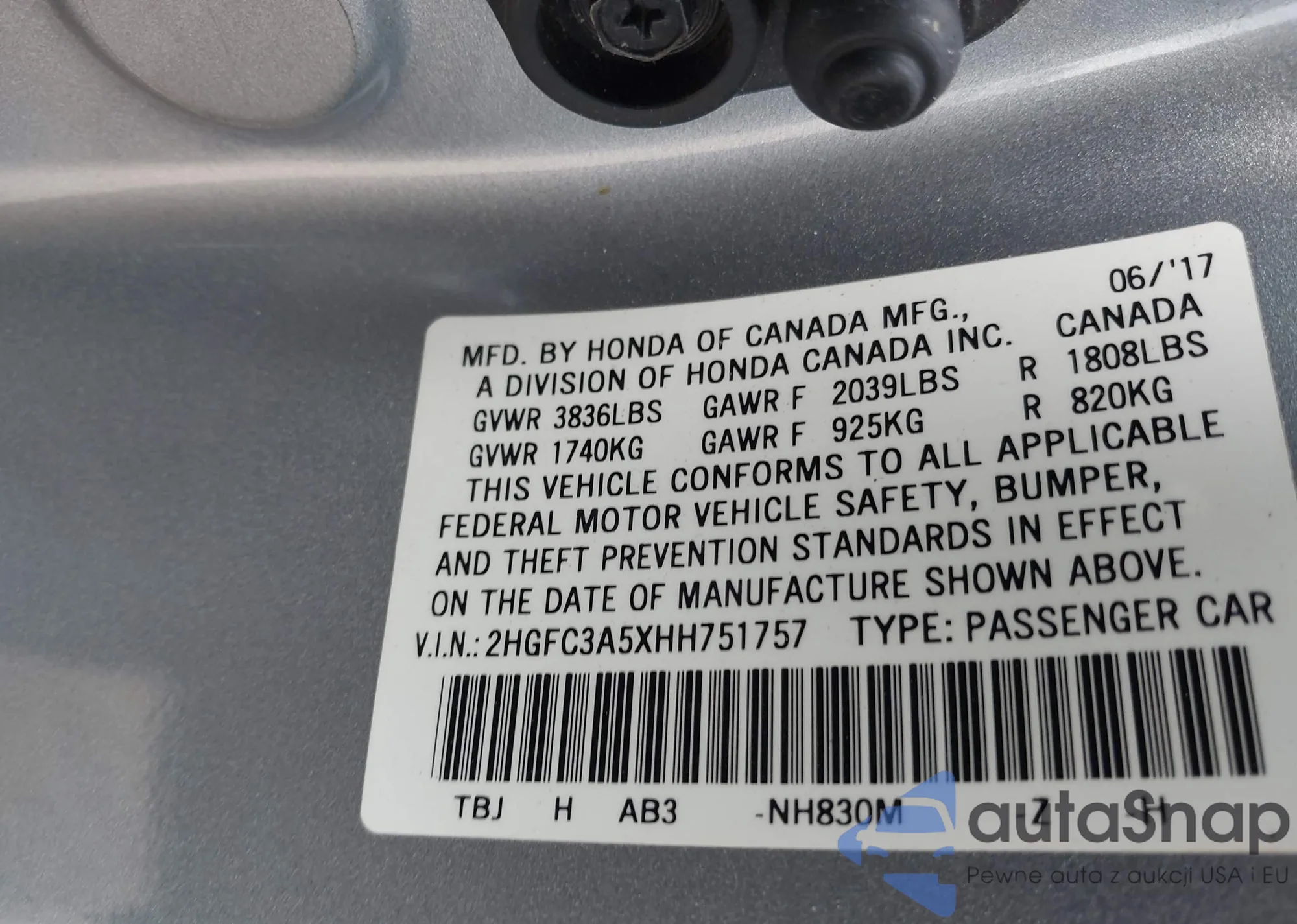 • VIN SHHFK7H43KU419824