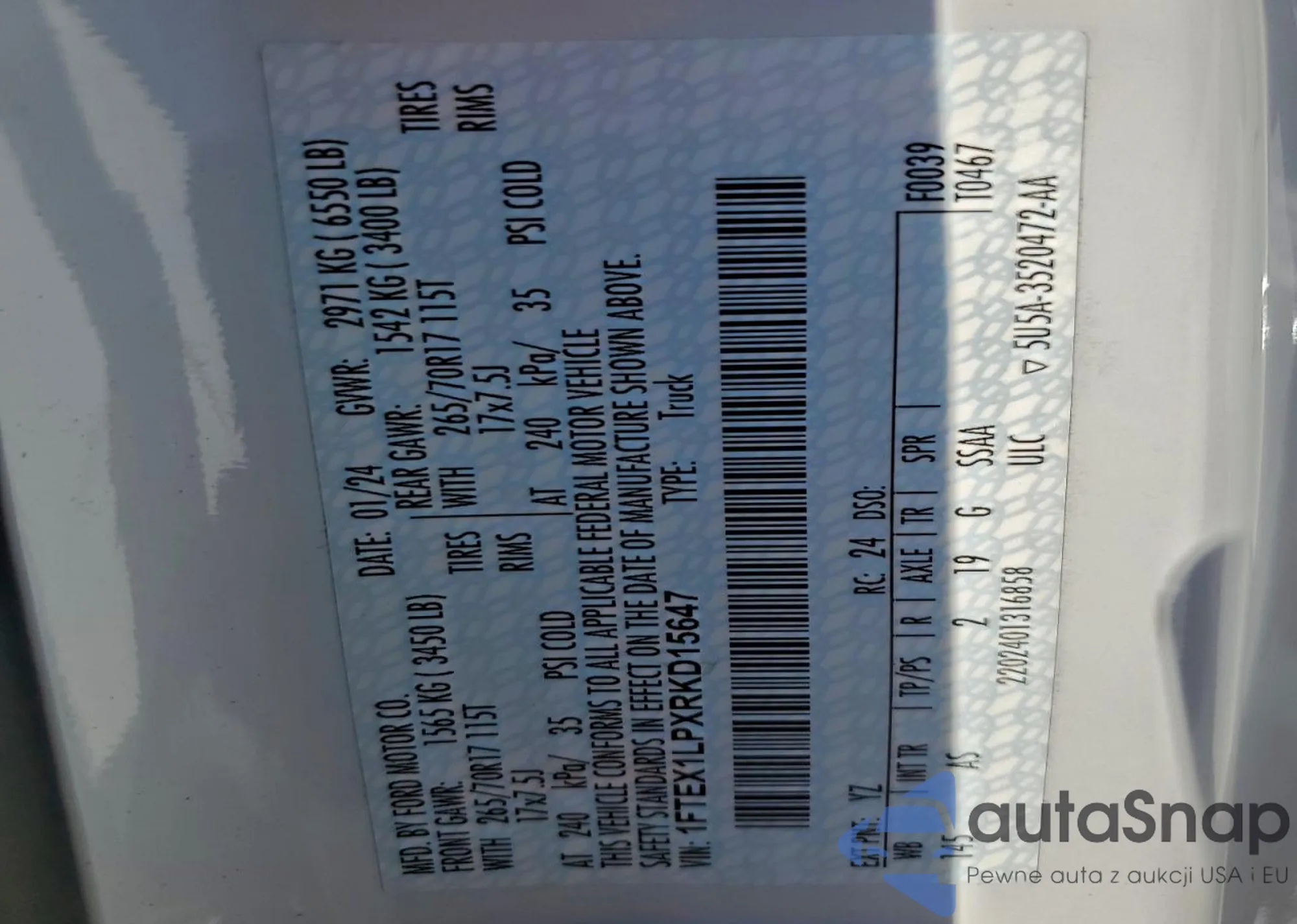 • VIN 1FTEX1LPXRKD15647