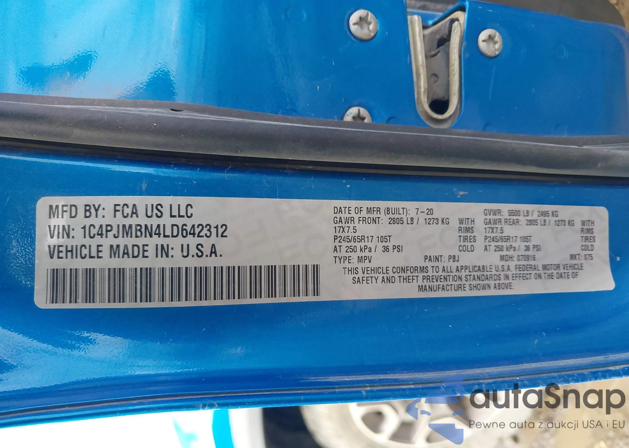 LOT: 43938270 VIN: 1C4PJMBN4LD642312