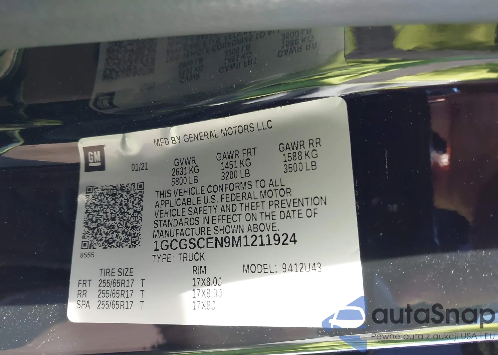 LOT: 44139683 VIN: 1GCGSCEN9M1211924