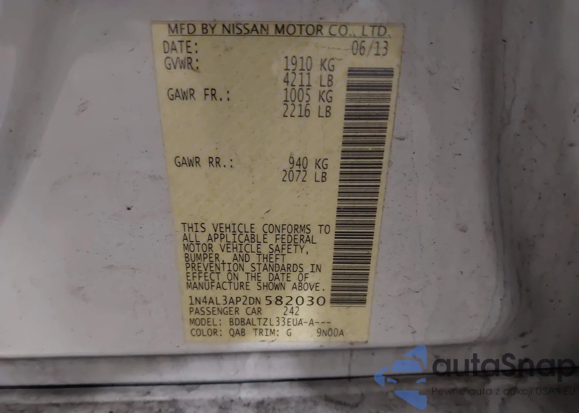 LOT: 44169919 VIN: 1N4AL3AP2DN582030
